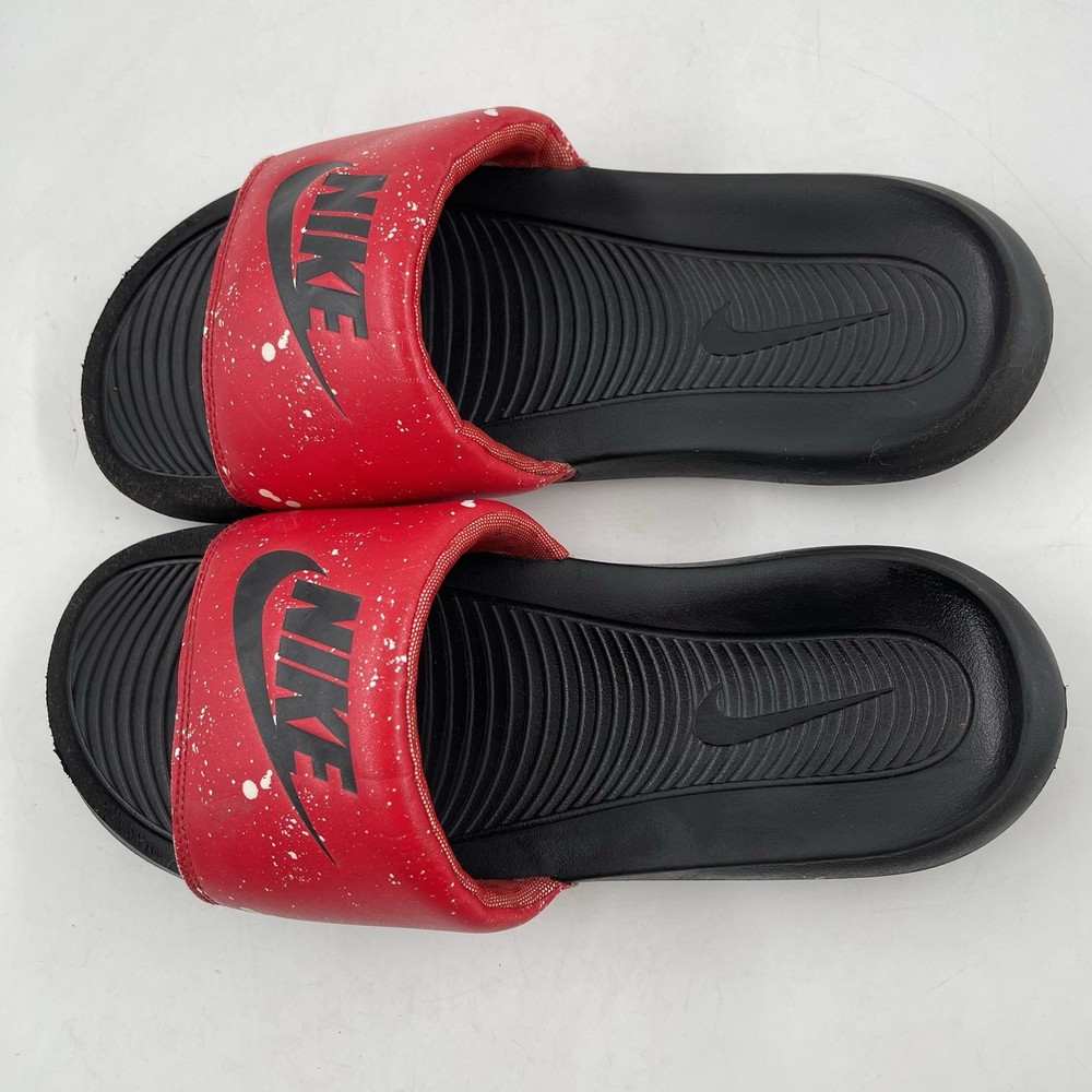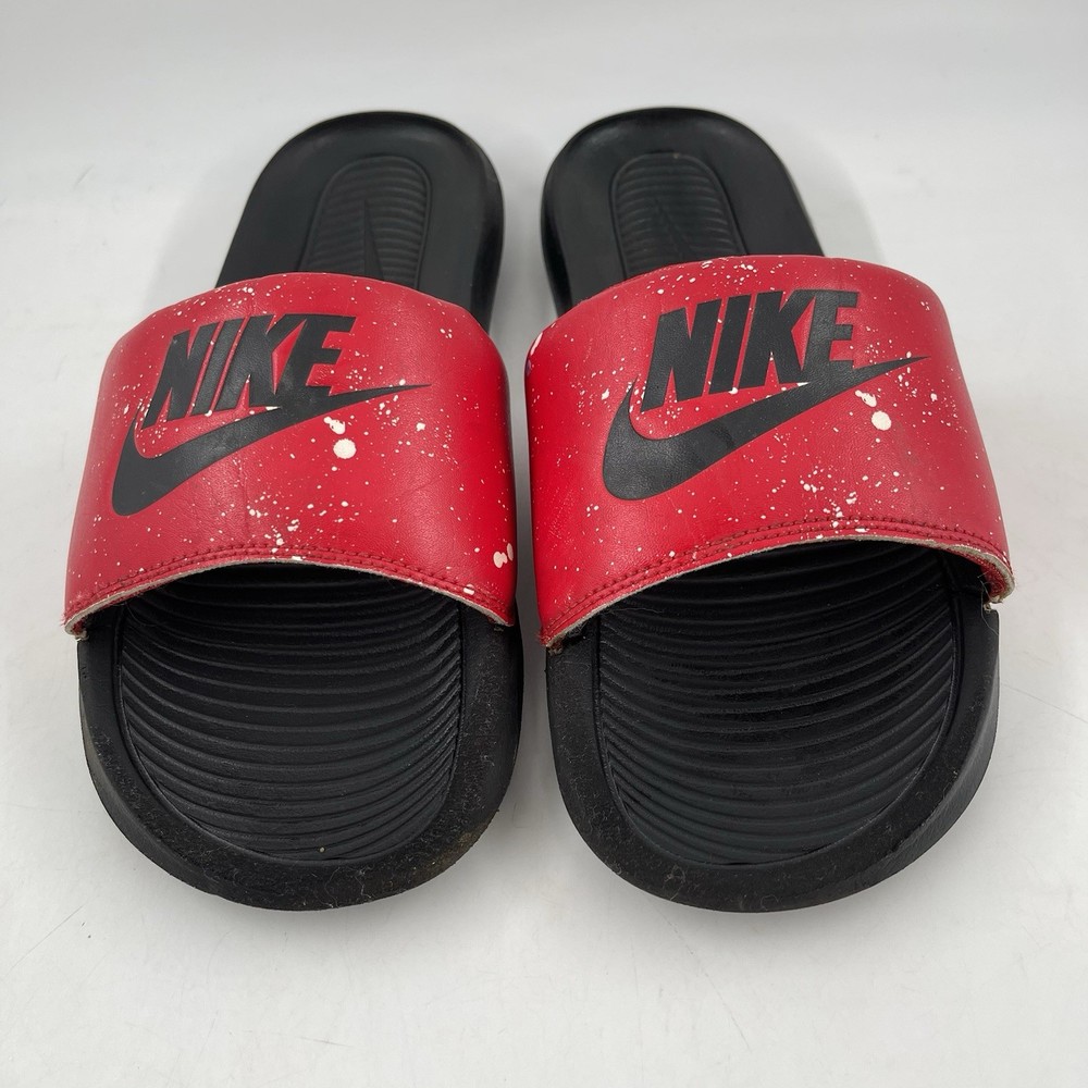 Very Good Preowned Condition Men’s Size 9 Nike Men’s Victori One - Size 9 - Red Splatter Print Slide Shoe Please see photos for details as they are part of the description Condition: Very Good. Normal signs of use. Gently worn, no stains, no holes or tears. See photos for details. Legendary Comfort, Remastered From the beach to the streets, the Nike Victori One perfects a classic, must-have design. Delivering lightweight comfort that’s easy to wear, it features new, softer foam that feels comfortable while the contoured footbed with grip pattern helps cradle and holds your foot in place. The wide, padded strap feels as good as it looks. •The new, softer foam and mechanical cushioning adds unbelievable comfort that lasts. •The contoured footbed cradles and supports your foot while its grip pattern helps keep your foot in place •the rolled top edge of the strap adds to the comfort while the thick padding feels soft •The wider strap adds additional space, accommodating more foot sizes •The tooling features a new pattern, for added traction •Bold “Nike” and SWOOSH on the straps lets you represent your brand •CN9678-006 Gently used. No original box. Carefully packaged and shipped same/next business day Please feel free to ask questions All items come from a smoke-free/pet friendly environment Please make sure to follow me. I list new inventory daily SH4441/01PE-R08