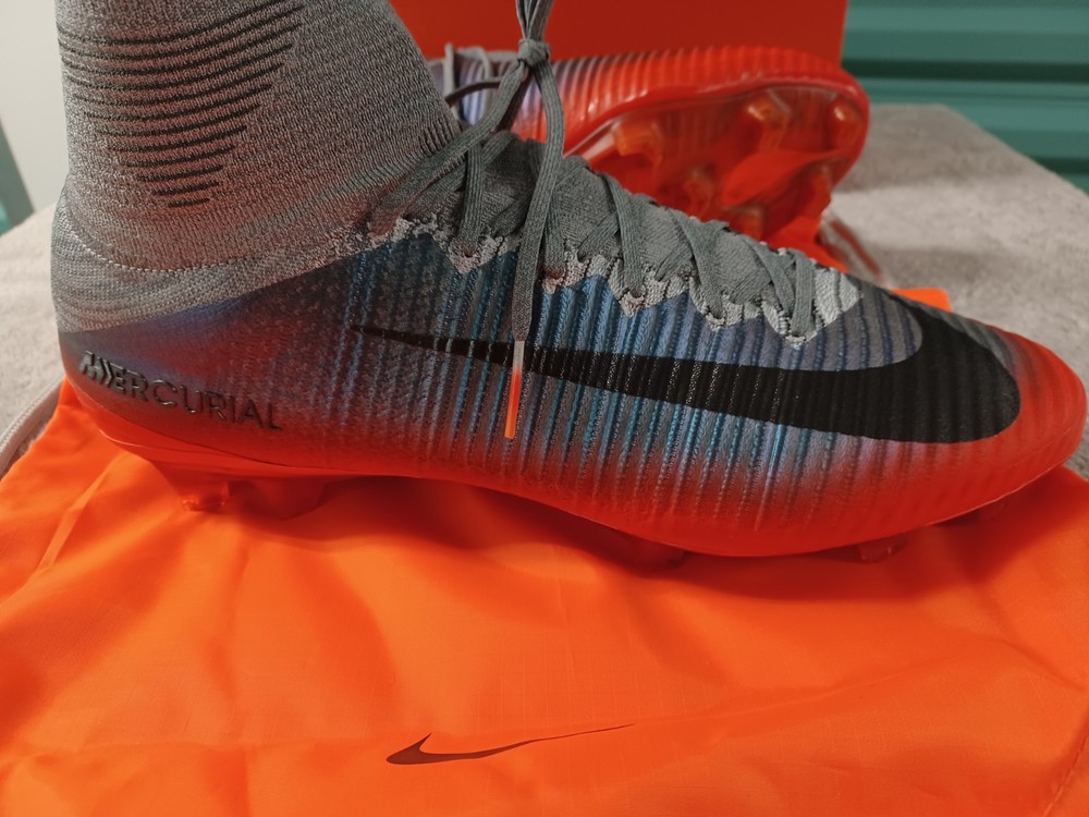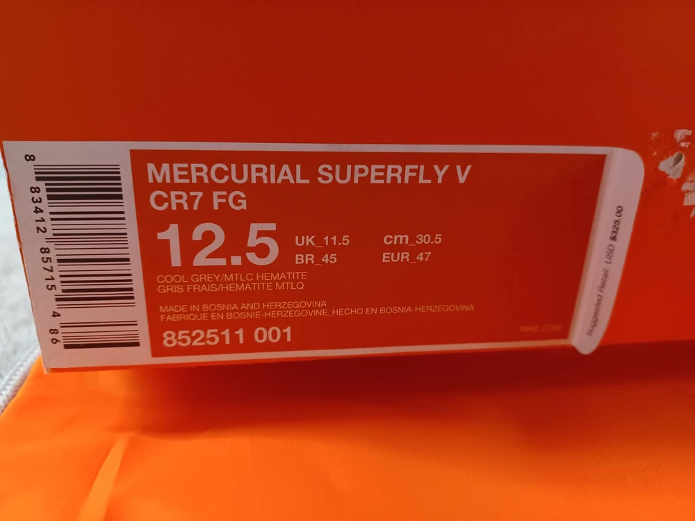 The Nike Mercurial Superfly 5 FG CR7 Metallic Hematite sneakers in size 12.5 for men are part of the new collection. These athletic shoes are designed with a sleek black color and feature the iconic Nike Mercurial product line. The style code 852511-376 indicates the specific model of the shoe, known for its high performance and sleek design. Perfect for those who prioritize both style and functionality in their footwear, these sneakers are a great choice for athletes and sneaker enthusiasts alike.