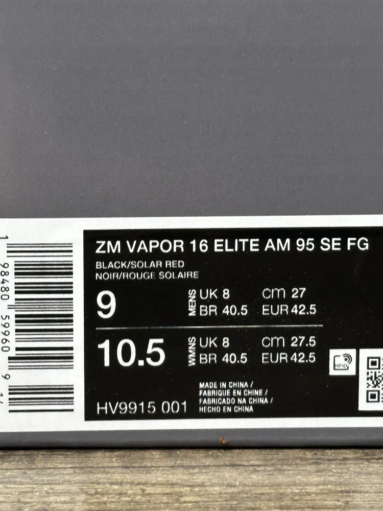 Thank you for considering our store! We appreciate your business and support! Item: Nike Mercurial Vapor 16 Elite x Air Max 95 SE FG Size: Men’s Size 9 Box may have some minor shelf wear or shipping wear such as small tears , dent , etc. Shoe is new i and unused. “New with box" Item number: HV9915-001 You must do so from your end within one hour of the order. Communications between buyer & seller are blocked by Ebay from the moment you purchase or at the acceptance of an offer. 100% authentic Shipped to you fast via USPS Priority Mail We consider all reasonable offers! With that said, we invite you to “watch" our items to receive special offers sent directly to you! Thank you for visiting!