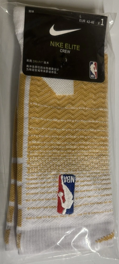 Nike NBA ELITE Quick Crew Basketball Socks Size L One Pair (White -Beige)Color!