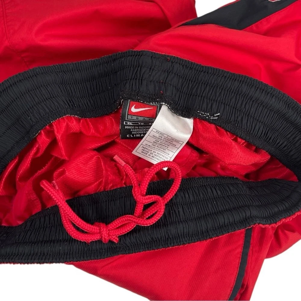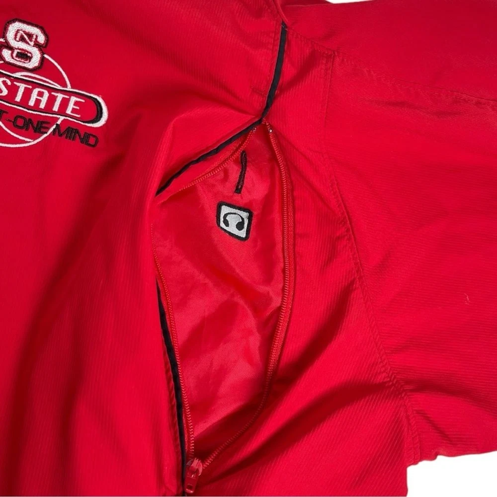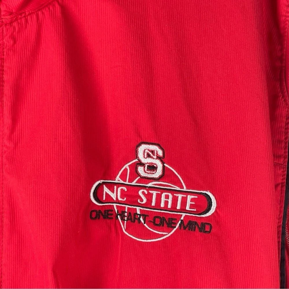 Nike NC State North Carolina Red 2 Piece Tracksuit Athletic Jacket Pants Set XL Show your spirit for NC State with this sporty two piece tracksuit set from Nike. Size: XL Color: Red Matching two piece set Jacket has zip up front closure, long sleeves, embroidered NC State logo and pockets. Pants have elasticized stretch waistband with adjustable inner drawcord, zipper pockets, and zipper leg hems. Polyester ClimaFit Measurements shown in photos Great condition