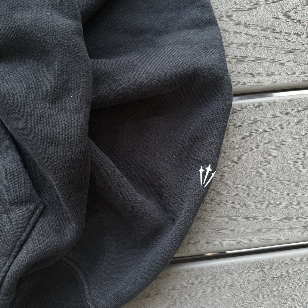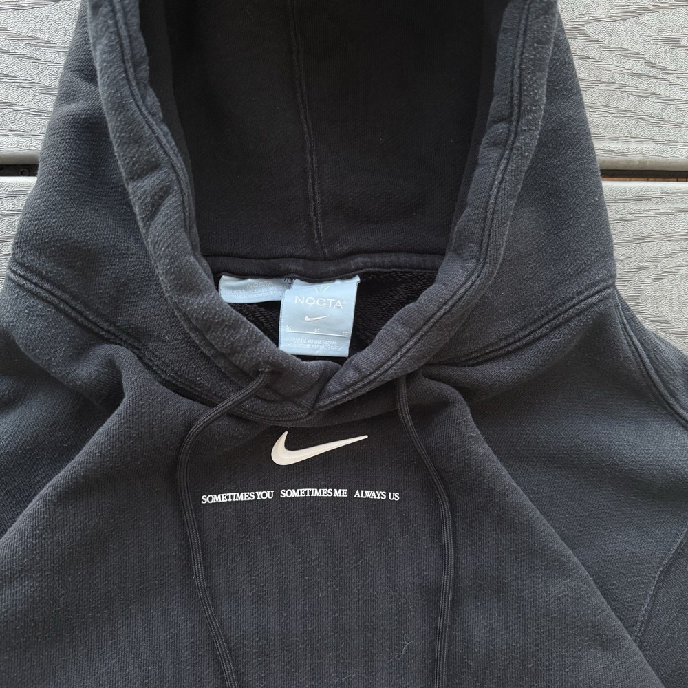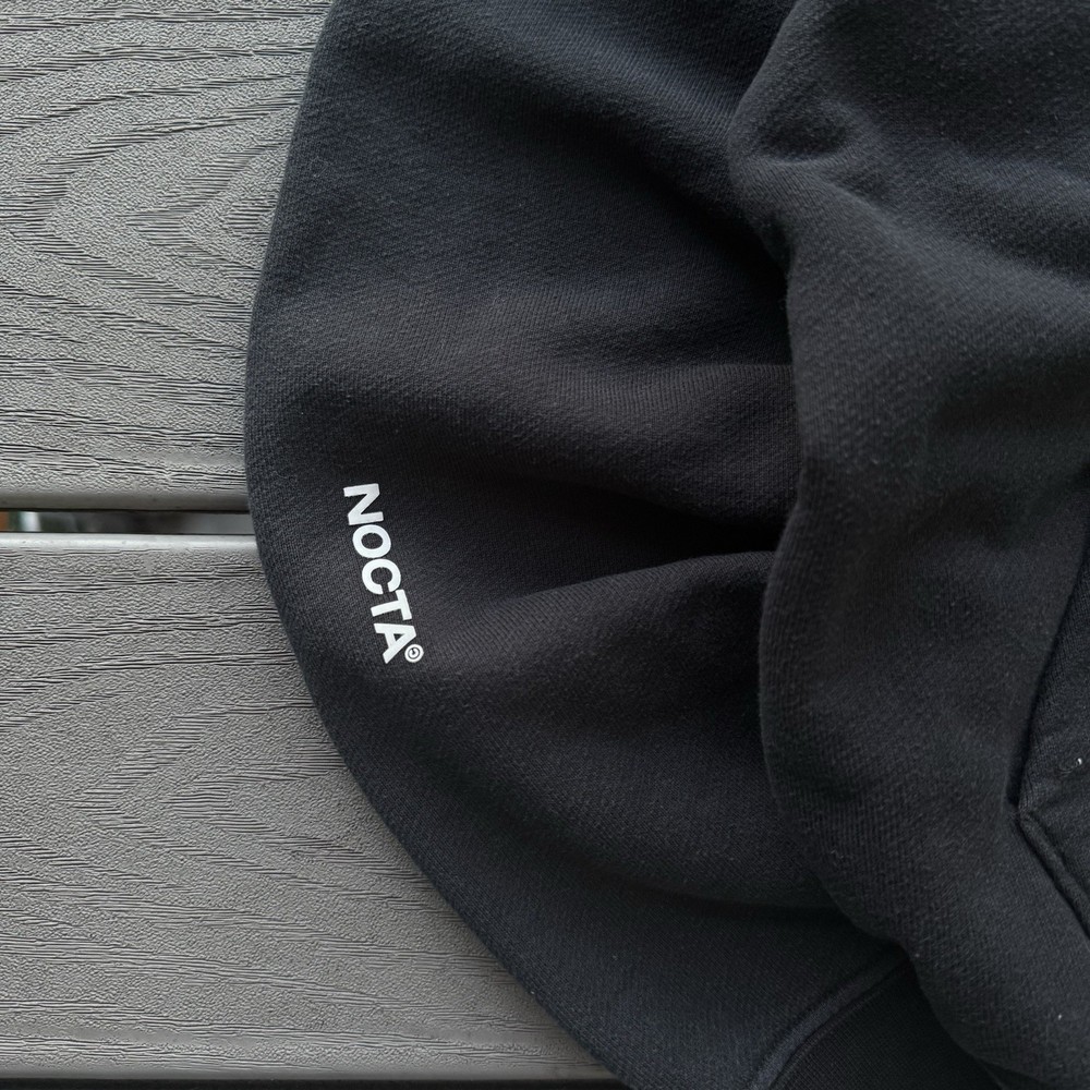 The Nike x NOCTA Men’s Large Drake Pullover Hoodie in Black features a classic pullover style with a hood and logo accents. Made from cozy fleece fabric, this hoodie is perfect for all seasons and includes convenient pockets for storage. The garment care is machine washable, making it easy to keep clean and fresh. With its designer theme and hip hop vibe, this hoodie combines modern style with a touch of classic outdoor appeal. Made by Nike in collaboration with NOCTA, this hoodie is a must-have for any music or sports enthusiast.