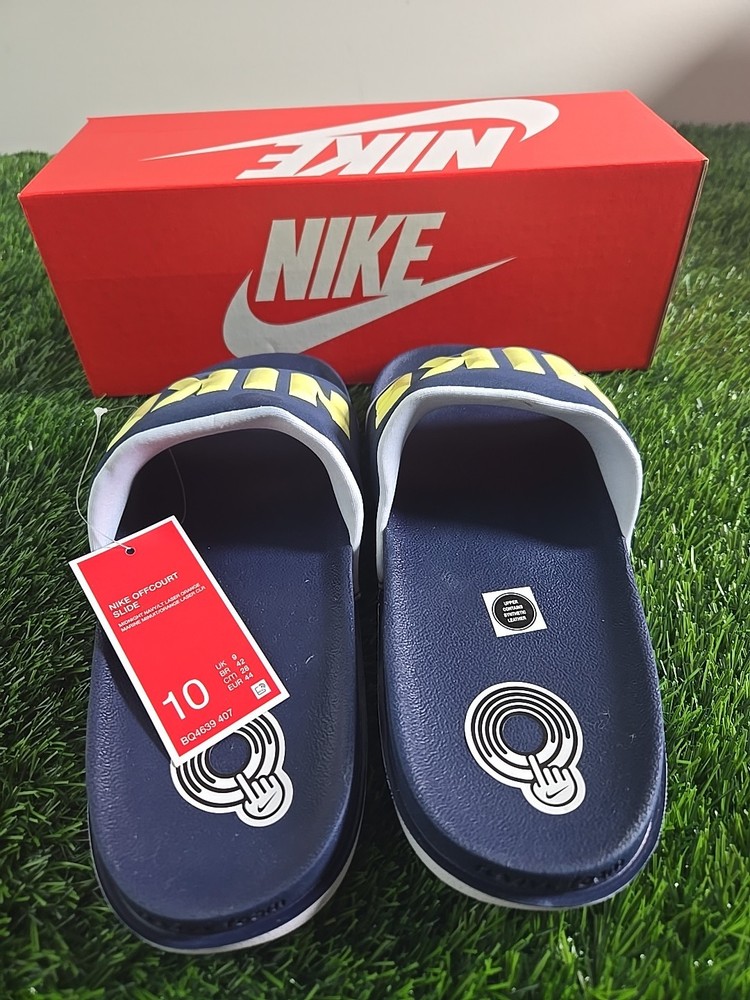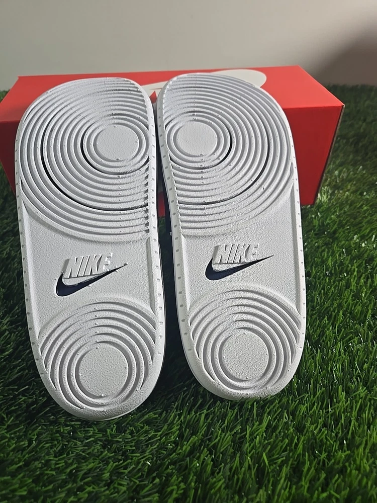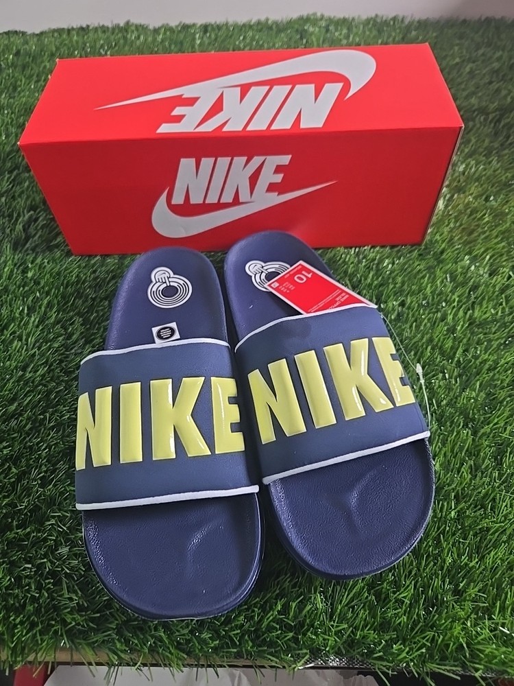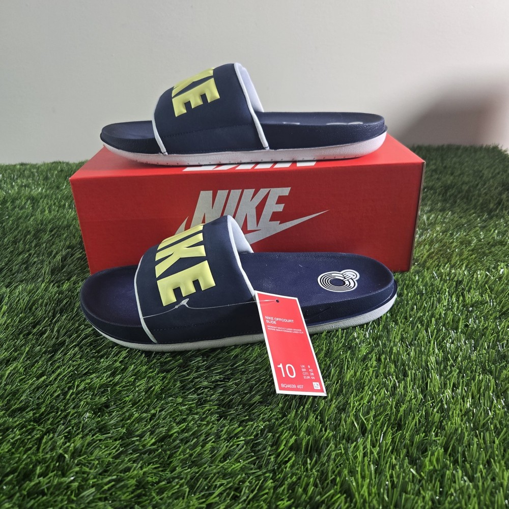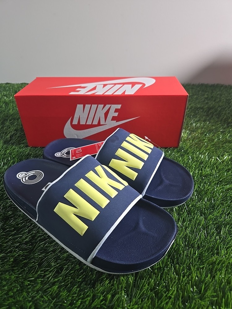 Nike Offcourt Slip-On Sandals Mens Size 10 Navy Spellout Casual Slides NIB