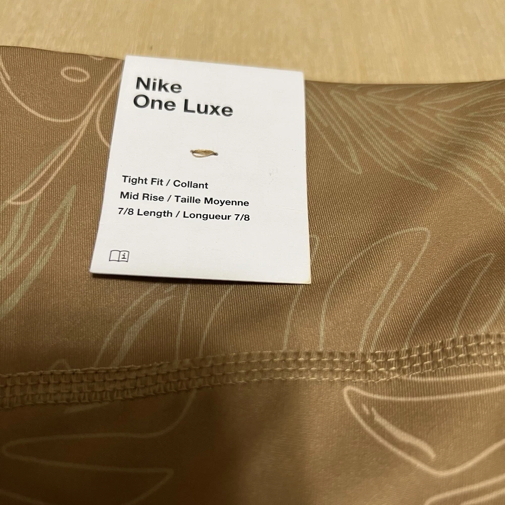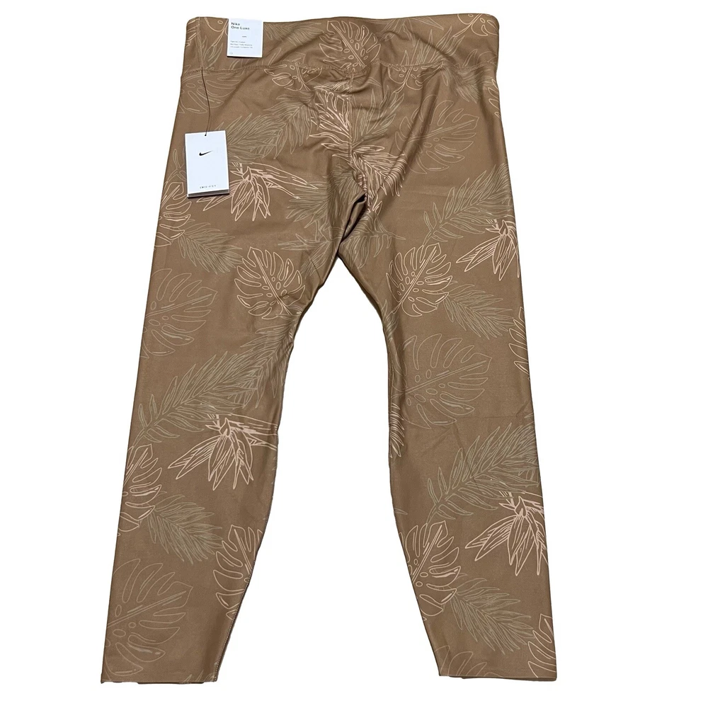 Nike One Luxe Dri-Fit Leggings Women’s 1X Bronze Gold Floral High Rise Yoga Leggings are brand new with tags. No defects or stains. Smoke free and pet free home. Waist-33”, length-33”, inseam-24”, and rise-11”. We list new stuff everyday! Feel free to send offers anytime! Please review all pictures and ask any questions you’d like before purchasing! Shipping next business day! Elevate your activewear game with these Nike One Luxe Dri-Fit leggings. The bronze and gold floral pattern adds a touch of feminine charm to these plus-size leggings, designed for women with a waist size of 33 inches and inseam of 24 inches. The high-rise waist and skinny leg style provide a comfortable and flattering fit, while the elastic waist and compression area on the waist and legs offer added support during gym and training sessions, yoga, and running and jogging.