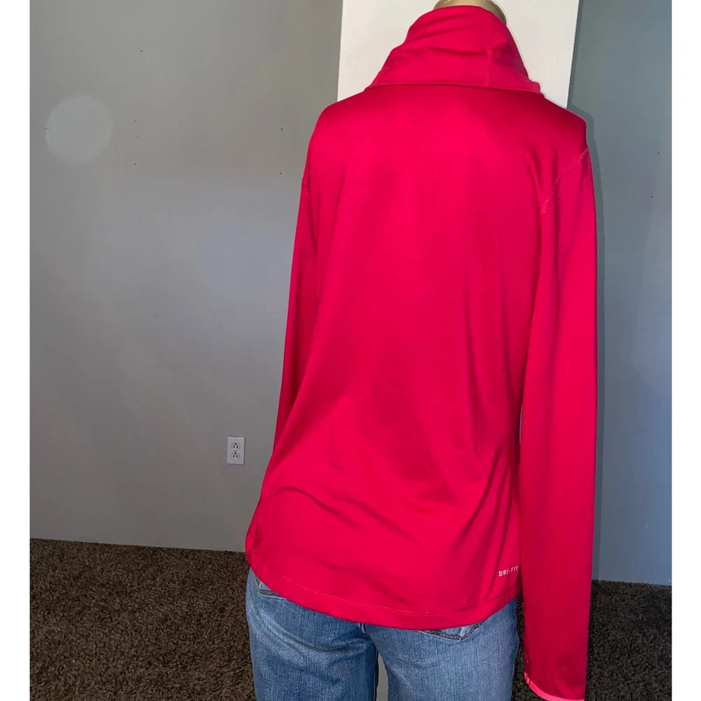 Size:LType:CasualSleeve Length:Long SleeveFit:RegularColor:PinkSeller Notes:“Gently preowned condition see pictures for details and condition.”Material:Polyester BlendClosure:PulloverDepartment:WomenNeckline:TurtleneckSize Type:RegularBrand:NikeOccasion:Activewear