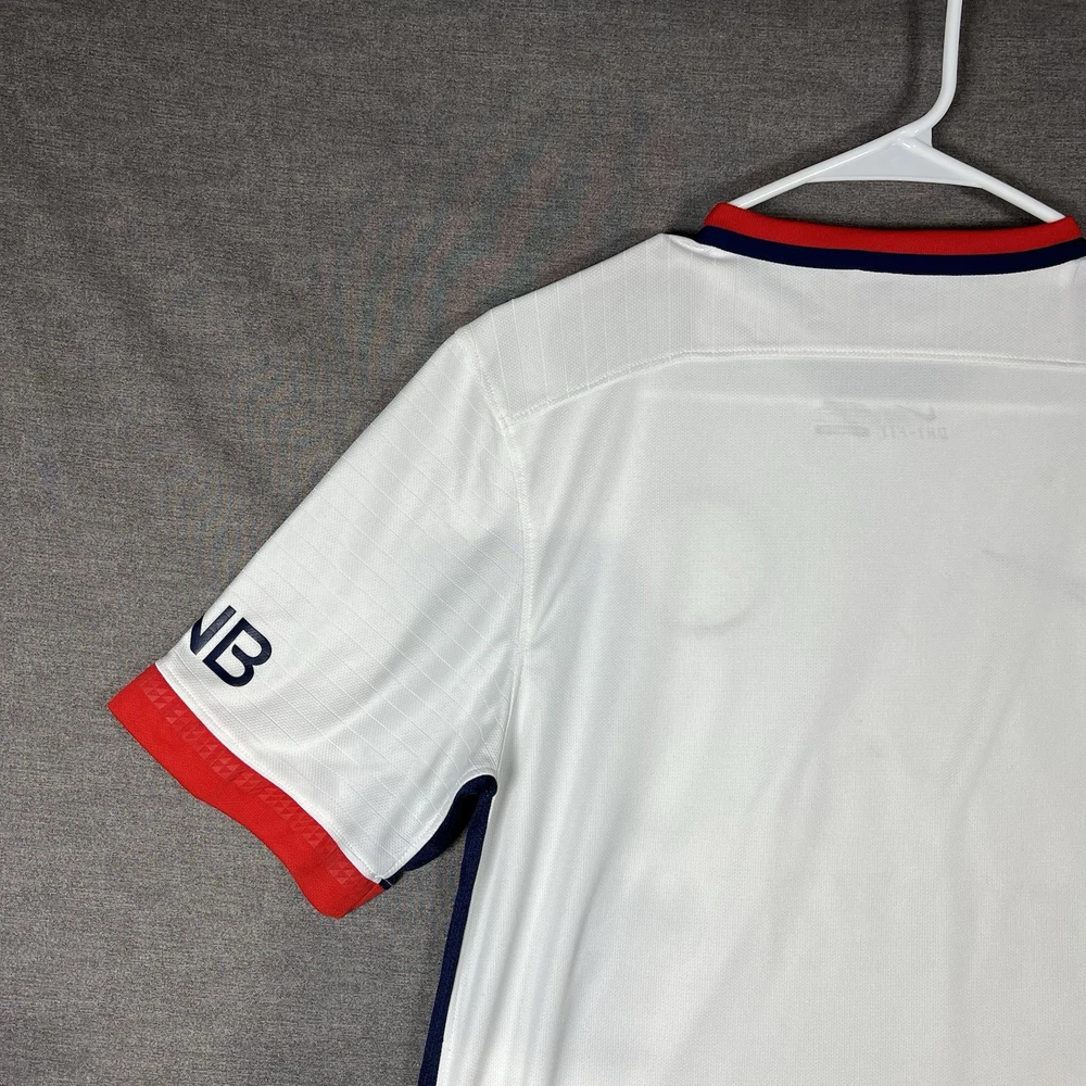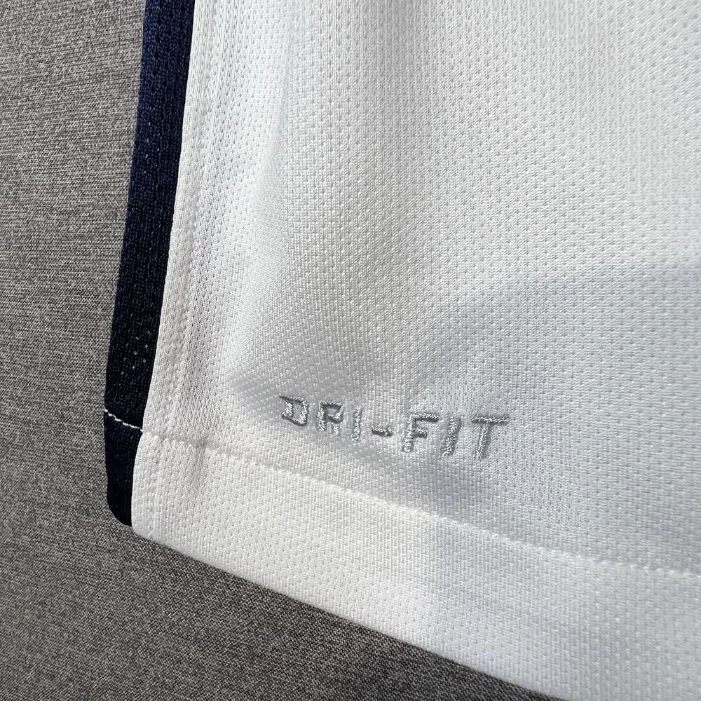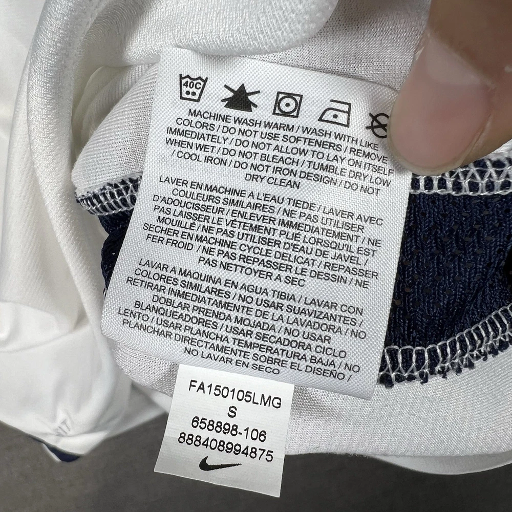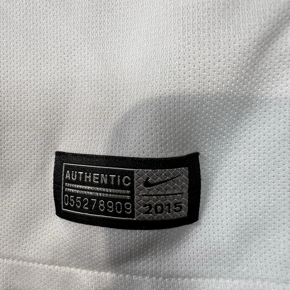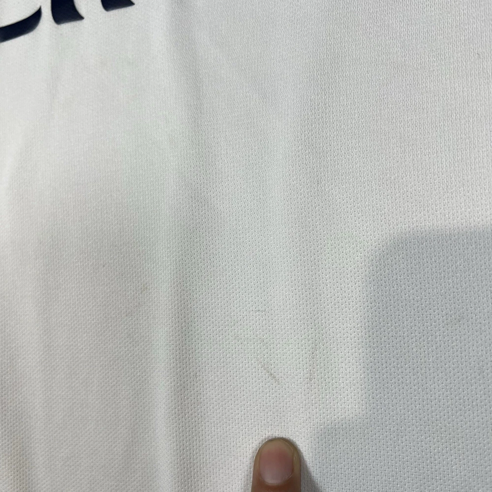 A couple of stains. Please see photos for reference. The Nike Paris Saint-Germain Away Jersey 2015-2016 in Men's Size L is a white officially licensed soccer jersey that represents the iconic Paris Saint-Germain team. Made by Nike, this jersey is designed for fans to show their support for their favorite team during matches or casual wear. With its 12 oz capacity, this jersey is perfect for any PSG supporter looking to represent their team in style.