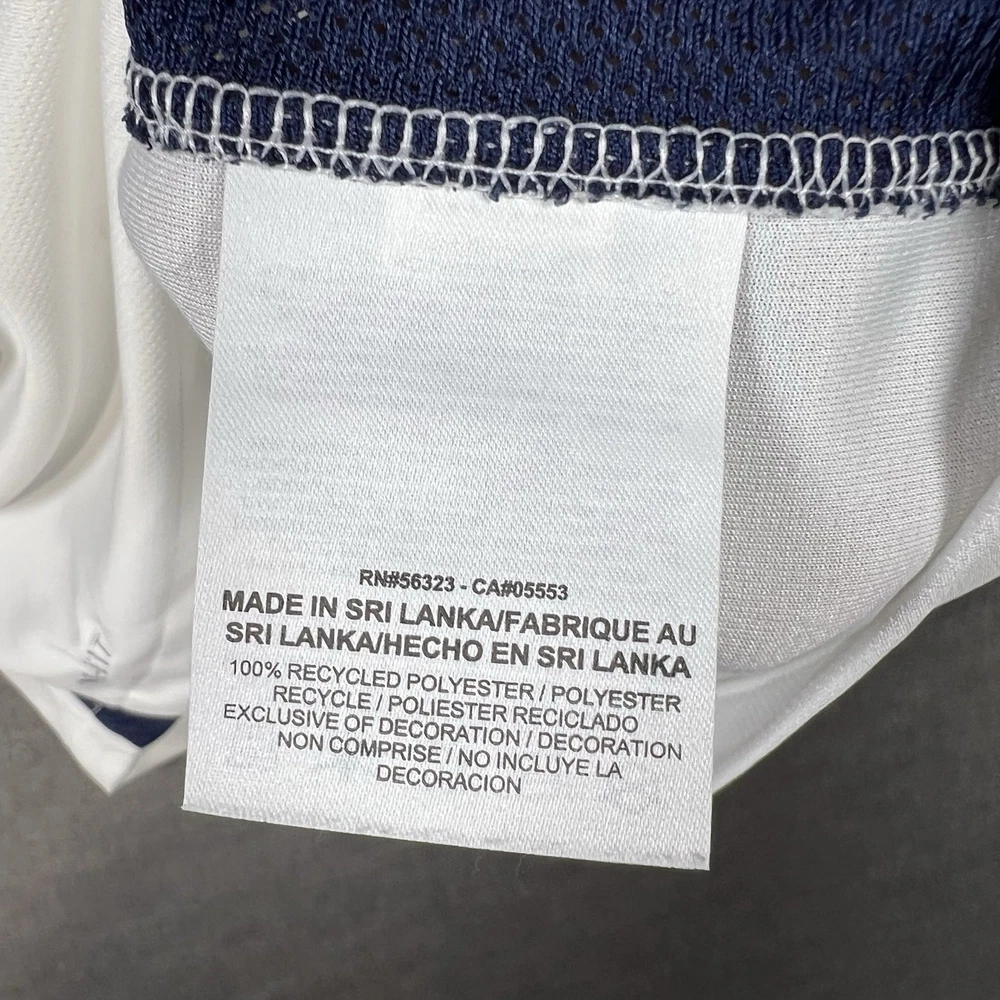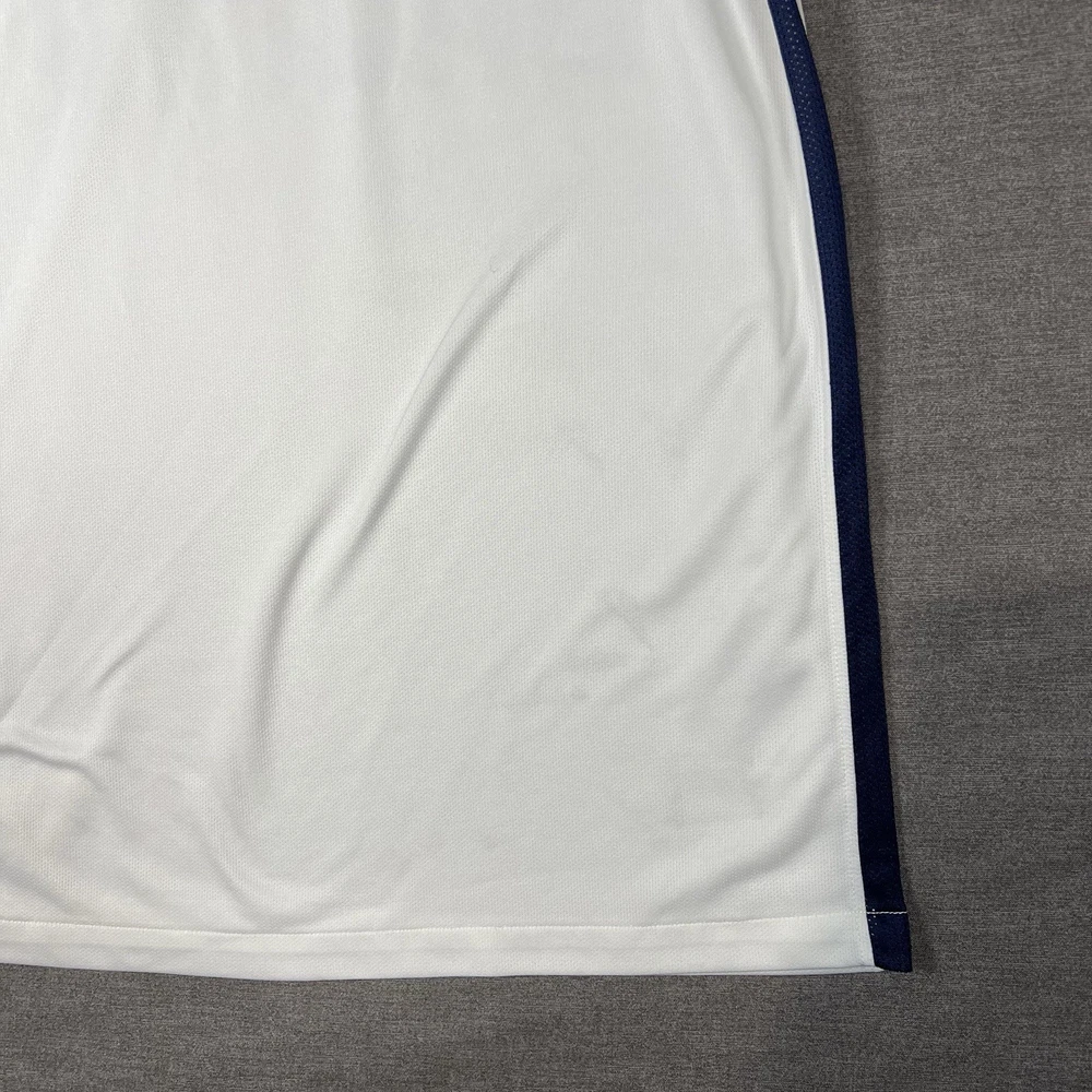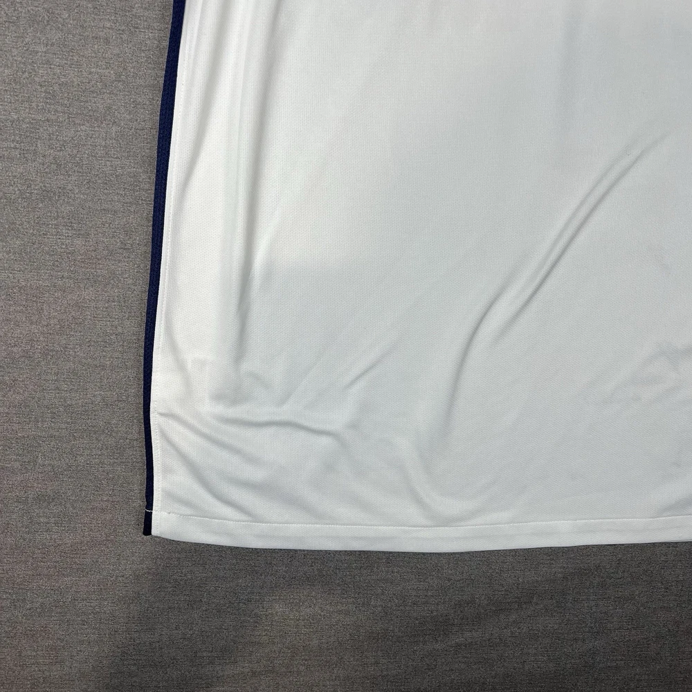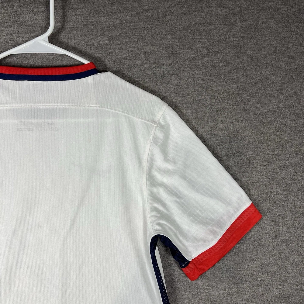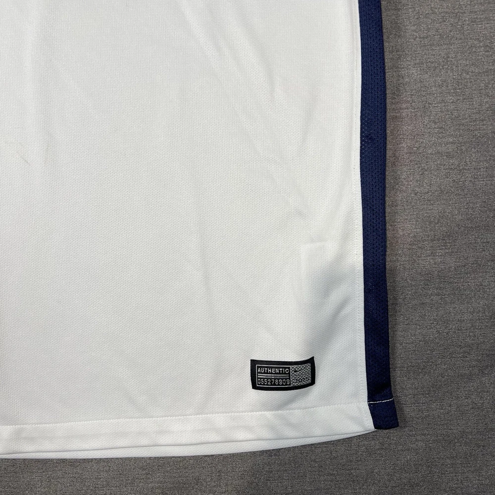 A couple of stains. Please see photos for reference. The Nike Paris Saint-Germain Away Jersey 2015-2016 in Men's Size L is a white officially licensed soccer jersey that represents the iconic Paris Saint-Germain team. Made by Nike, this jersey is designed for fans to show their support for their favorite team during matches or casual wear. With its 12 oz capacity, this jersey is perfect for any PSG supporter looking to represent their team in style.