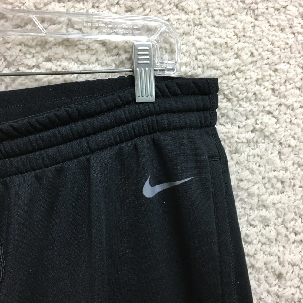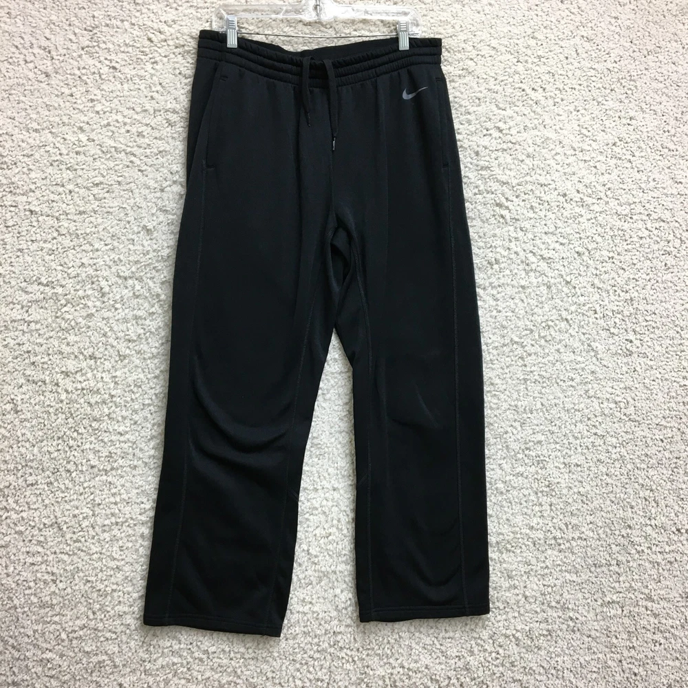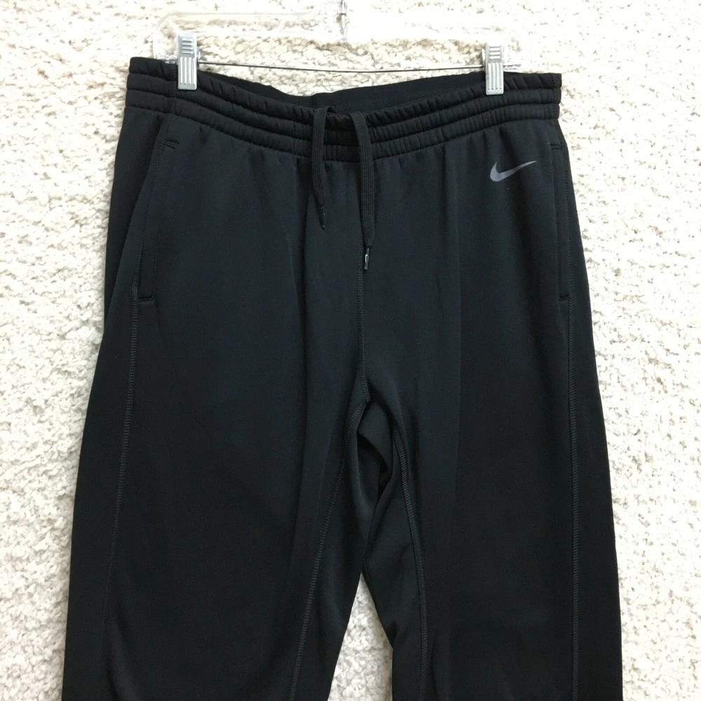 Brand: Nike Fabric Type: Blended Fabric Waist Size: 33 in Pattern: Solid Department: Men Fit: Athletic Closure: Drawstring Performance/Activity: Cross Training, Gym & Training, Running & Jogging Season: Fall, Spring, Summer Material: Polyester Size Type: Regular Garment Care: Machine Washable Size: L Leg Style: Straight Color: Black Compression Area: Waist Country/Region of Manufacture: Vietnam Style: Sweatpants Theme: American, Classic, Logo, Modern, Outdoor Inseam: 29 in Occasion: Activewear, Casual Seller Notes: “Good Used Condition. Please, See Pictures for Full Condition and Measurements.” Features: Breathable, Comfort, Stretch Product Line: Nike Dri-FIT Type: Pants