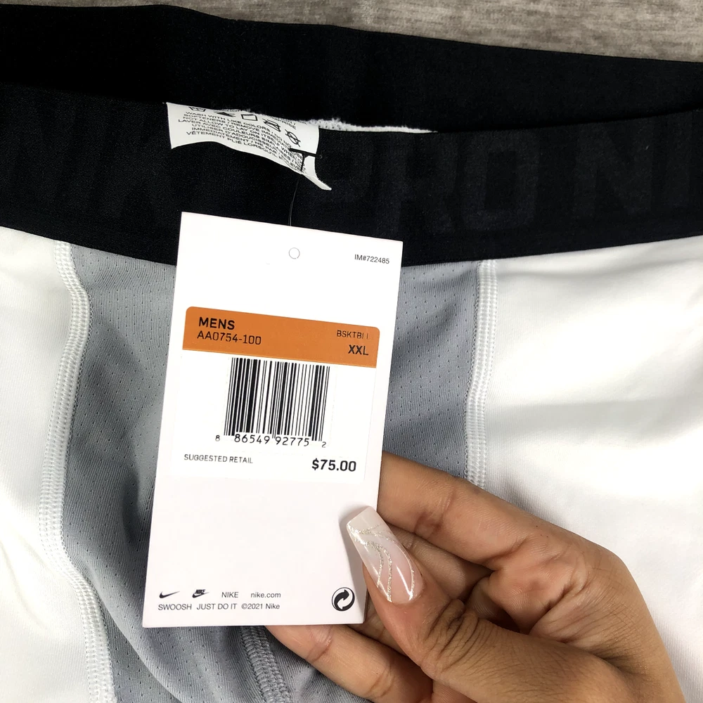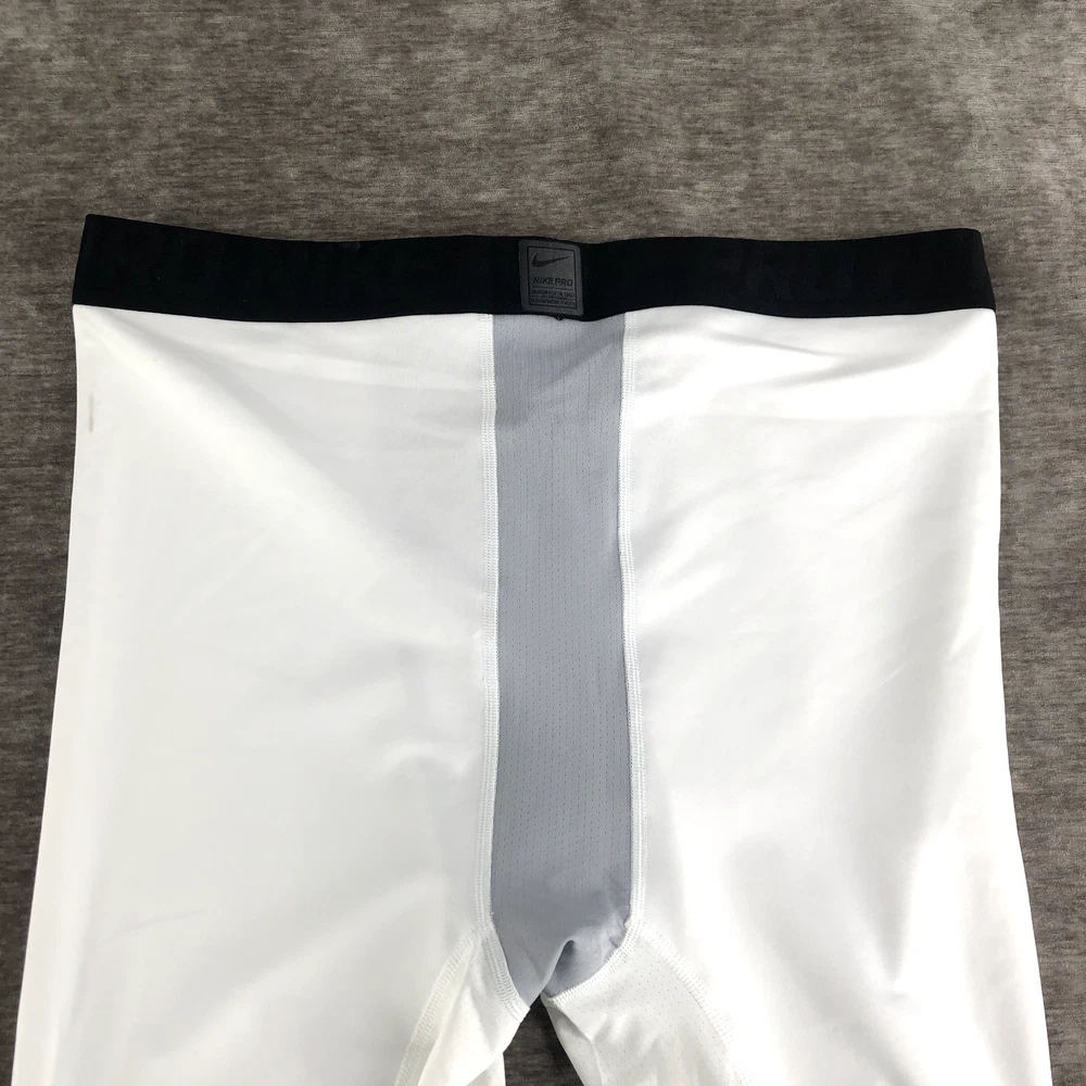 MPN: AA0754100 Inseam: 24 in Compression Area: Leg Theme: Sports Type: Leggings Features: Compression Style: Compression Department: Men Size: 2XL Season: Fall, Spring, Summer, Winter Performance/Activity: Baseball, Basketball, Beach, Bodybuilding, Cheerleading, CrossFit, Cross Training, Cycling, Dance, Driving, Walking Closure: Drawstring Color: White Vintage: No Waist Size: 32 in Material: Polyester Blend Fabric Type: Blended Fabric Occasion: Activewear, Business, Casual, Christening, Formal, Party/Cocktail, Travel, Wedding, Workwear Brand: Nike Leg Style: Straight Fit: Regular Size Type: Regular Handmade: No Pattern: Solid Personalize: No Product Line: Nike Pro