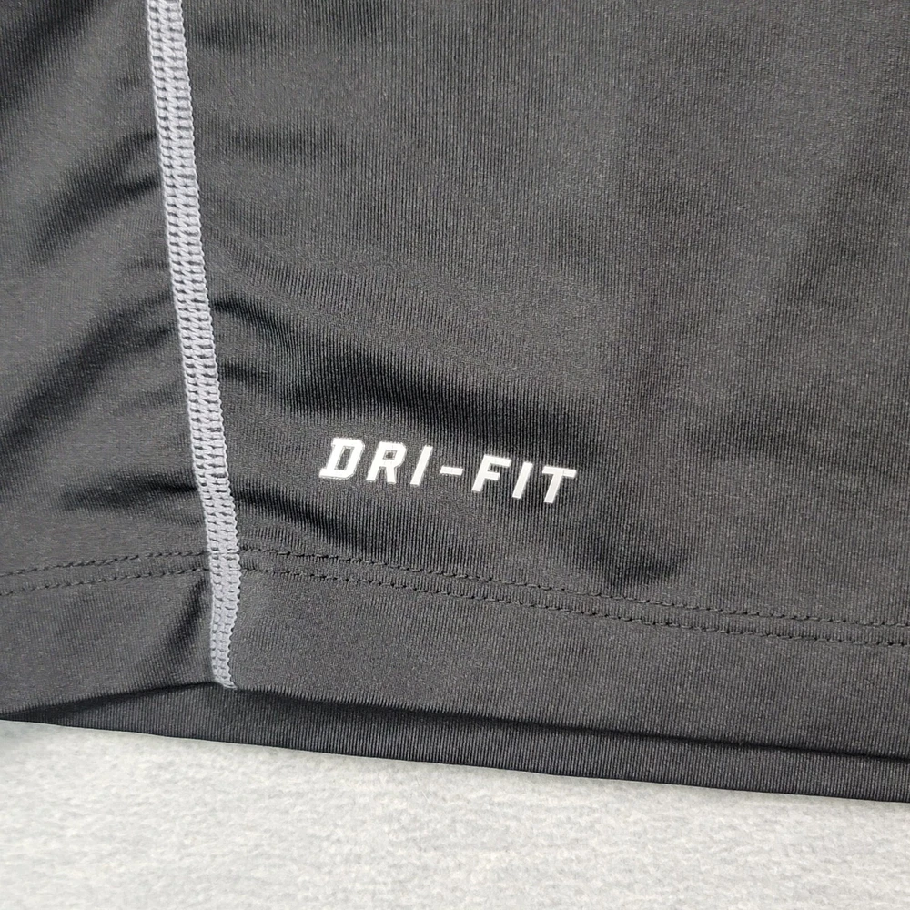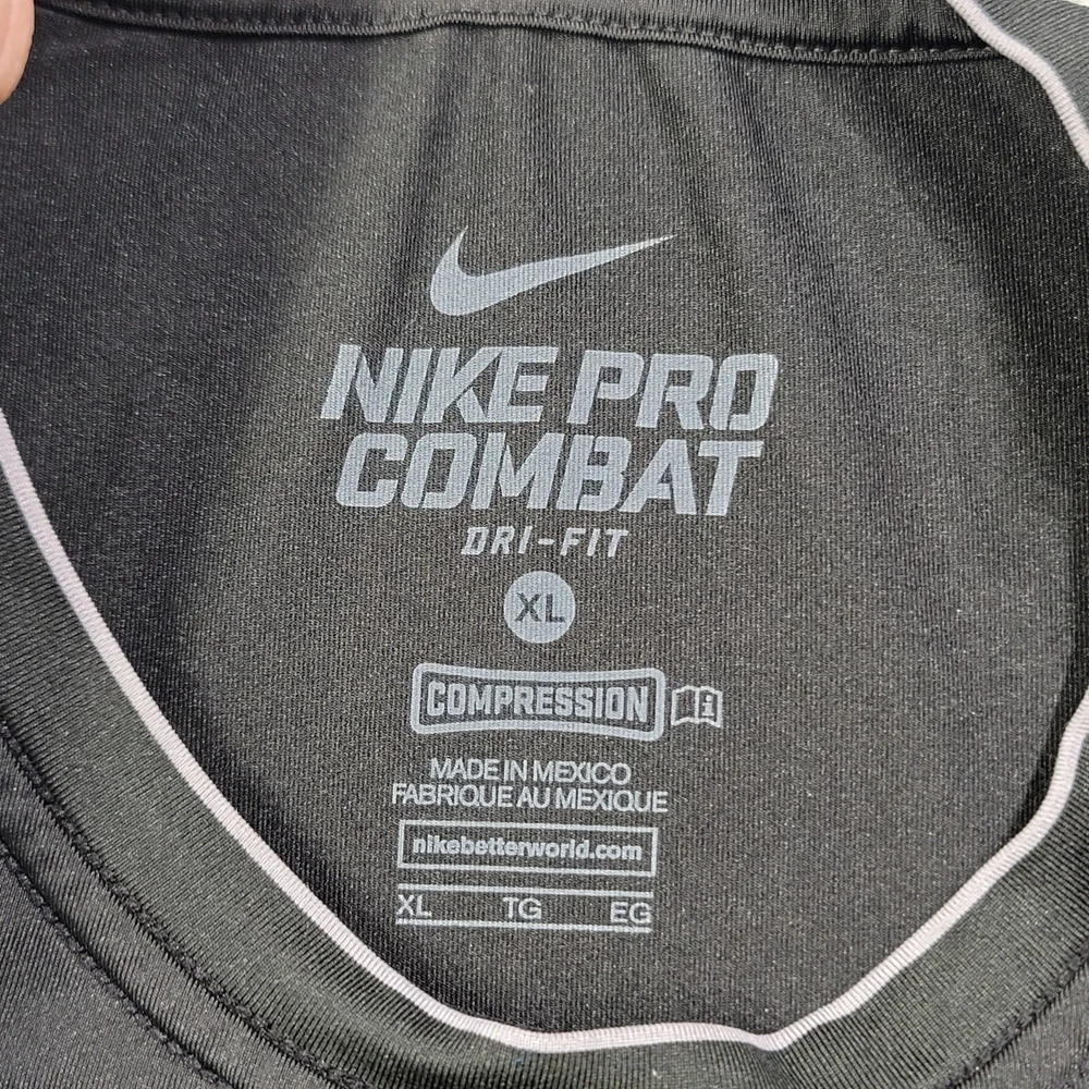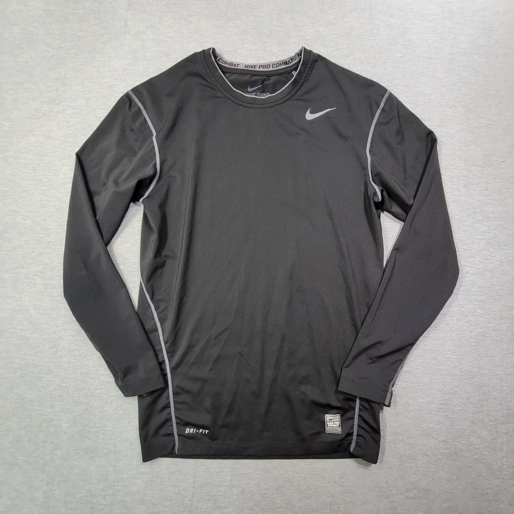 Elevate your activewear game with this Nike Pro T-Shirt for men in size XL. The classic black color and solid pattern make it a versatile addition to your workout wardrobe. The shirt features a crew neckline, long sleeves with a classic/fitted sleeve type, and a pullover closure. Crafted from a blend of polyester and spandex, this shirt offers a comfortable and athletic fit, with stretch features for added convenience. The Nike Dri-Fit model ensures that you stay dry and comfortable during your training and running sessions. This shirt also showcases the iconic Nike Swoosh logo, adding a touch of style to your workout outfit.