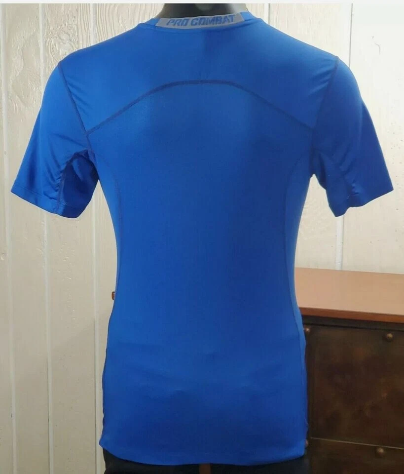 An Incredible one time opportunity to own this Nike Pro Combat DRI-FIT Fitted Blue Performance Sportswear Shirt Top Sz S See last photo for minor thread pull left side panel. ***PIT TO PIT IS 17-3/4" ***VIEW ALL MEASUREMENT PHOTOS FOR PROPER FIT**** Explore the in depth photos showing every angle possible as if you have it in your hands. Thank you from all of us at DPACTIVEXPRESS ***Note 1: Display stands not included with all items unless specifically stated in the title. ****Note 2: DPACTIVEXPRESS carries a diverse collection of brands in this category, so we take a pit to pit measurement photo. ~~~~~~~ITEM IN LISTING PHOTOS IS THE ITEM YOU WILL RECEIVE~~~~~