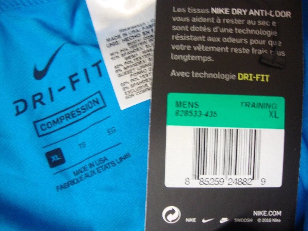 This is a pair of Nike Pro Cool DRI-Fit Compression Tights in size XL for men. The leggings feature a blue "Space Dust" design and offer compression for activewear. They have a pull-on closure and are part of the Nike Pro product line. The style is compression with a space theme, suitable for sports and workouts.