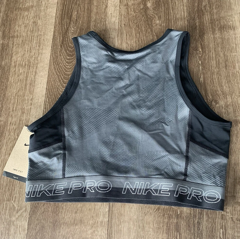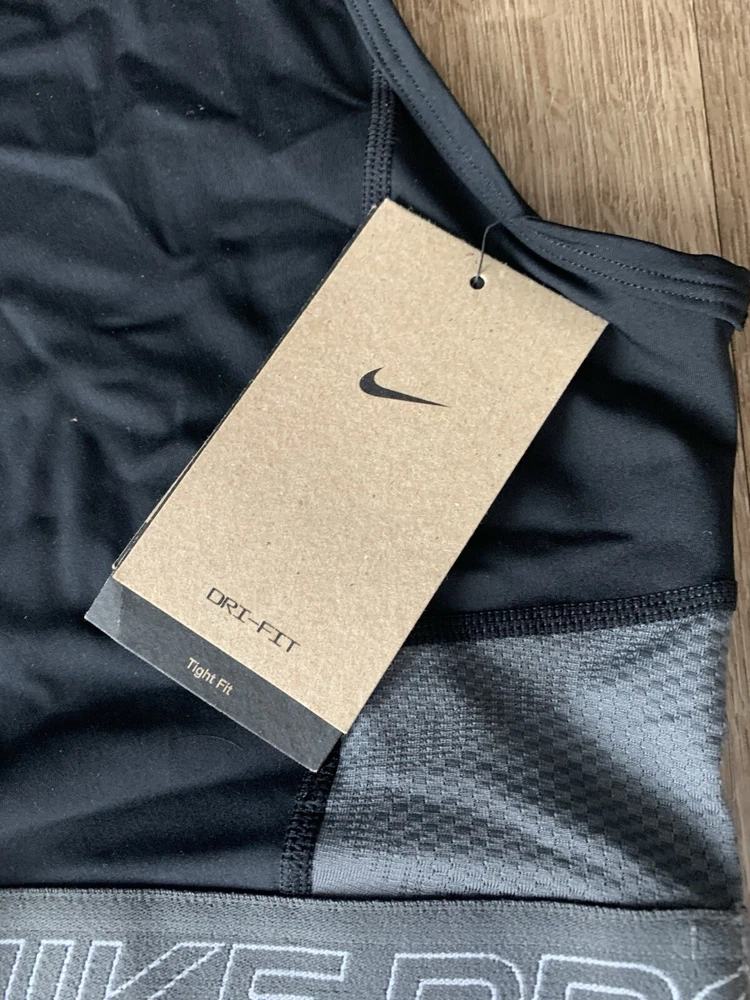 Elevate your workout wardrobe with the Nike Pro Dri-FIT Cropped Training Tank Top. Designed for the modern woman who seeks both style and functionality, this tank features Nike's innovative Dri-FIT technology, ensuring you stay cool and dry during even the most intense workouts. The sleek black and gray color scheme pairs effortlessly with your favorite activewear, making it a versatile addition to any fitness enthusiast's collection. Crafted with a focus on performance, this cropped tank top is part of the esteemed Nike Pro product line, known for its high-quality fabrics and impeccable craftsmanship. The regular size small fits true to size, providing a comfortable and flattering silhouette. Whether you're hitting the gym or enjoying an outdoor jog, this Nike Dri-FIT tank is engineered to support your active lifestyle.