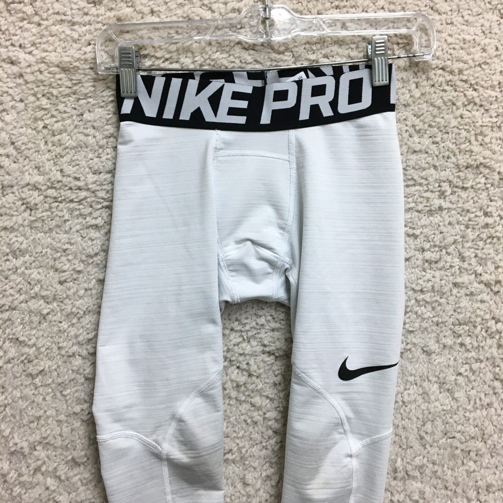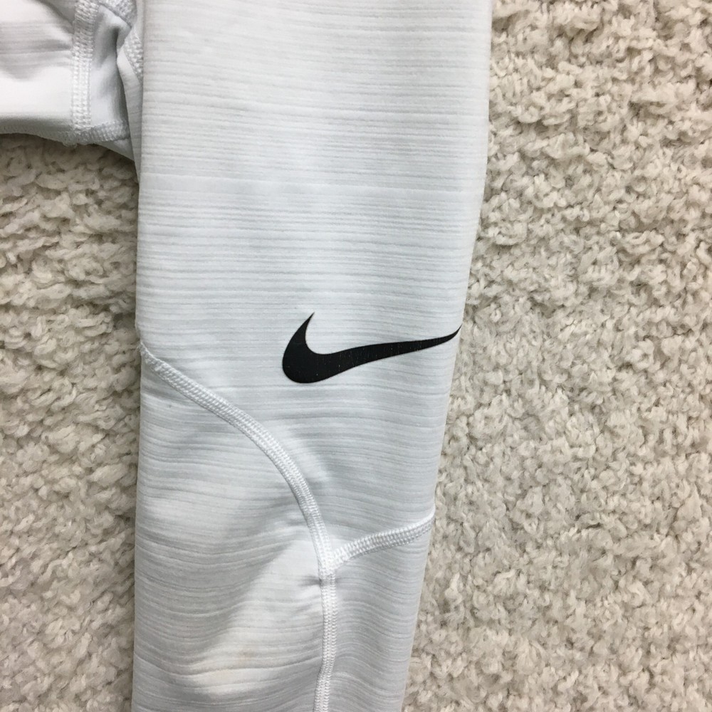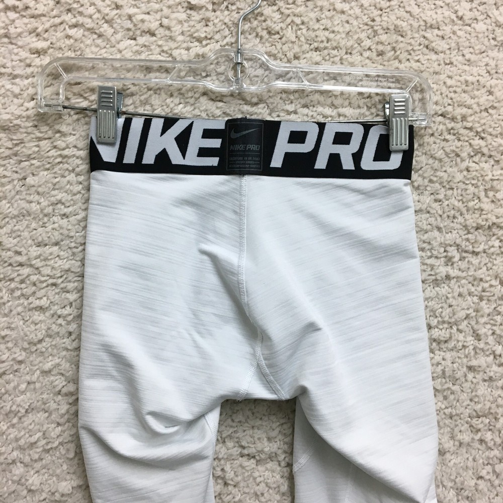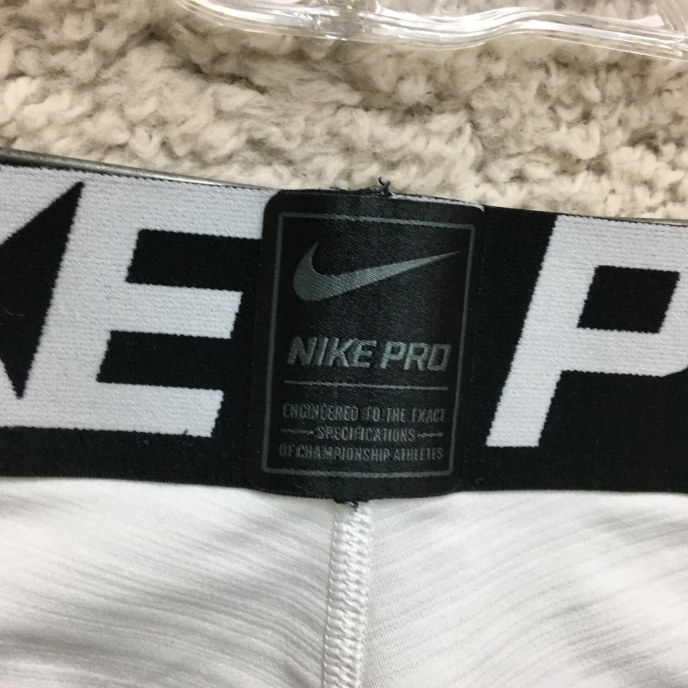 Season: Fall, Spring, Summer Material: Polyester, Polyester Blend, Spandex Country/Region of Manufacture: Sri Lanka Department: Men Color: White Theme: Athleisure, Logo, Sports Size Type: Regular Closure: Pull On Fabric Type: Blended Fabric Occasion: Activewear, Casual Garment Care: Machine Washable Waist Size: 23 in Type: Pants Performance/Activity: Cross Training, Gym & Training, Running & Jogging Features: Breathable, Comfort, Compression, Easy Care, Elastic Waist, Stretch Pattern: Solid Brand: Nike Leg Style: Skinny Compression Area: Leg, Thigh, Waist Style: Compression Inseam: 24 in Fit: Athletic Size: M Product Line: Nike Pro