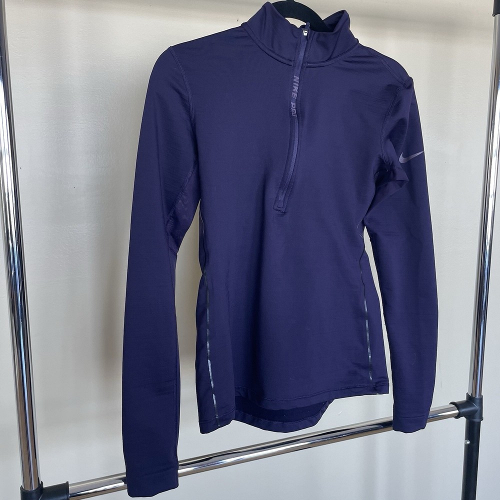 Type: Shirt Closure: Zip Style: Basic Product Line: Nike Pro Combat Personalize: No Model: Nike Dri-Fit Compression Area: Body Fabric Type: Blended Fabric Season: Fall, Spring, Summer, Winter Occasion: Activewear UPC: Does not apply Size: L Sleeve Length: Long Sleeve Size Type: Regular Brand: Nike Color: Blue Chest Size: 19” Laying Flat Performance/Activity: Running & Jogging, Walking Pattern: Solid Garment Care: Machine Washable Fit: Slim gtin13: Does not apply Country/Region of Manufacture: Sri Lanka Department: Teens Material: Polyester, Spandex Handmade: No Vintage: No Neckline: Collared Features: 1/4 Zip, Breathable, Moisture Wicking, Quick Dry, Stretch, Thumb Holes, Compression Sleeve Type: Casual Sleeve