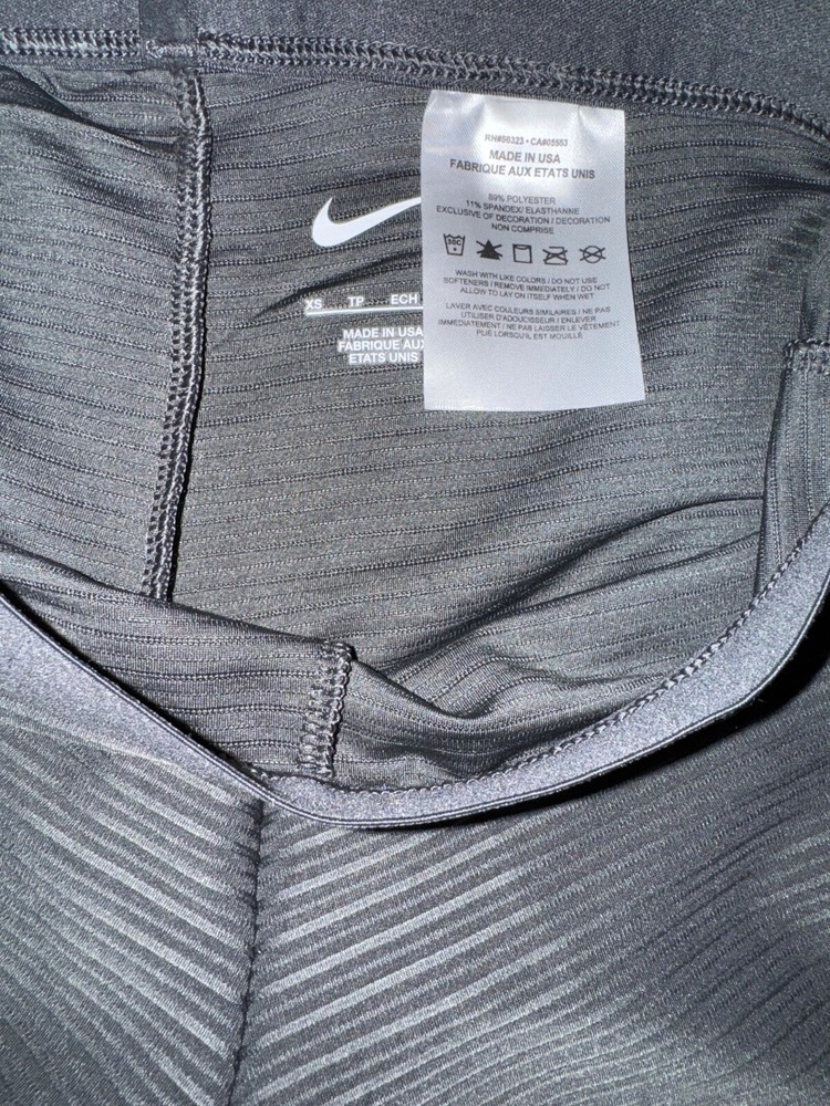 gtin13: Does not apply Color: Gray Product Line: Nike Pro Size Type: Regular Brand: Nike Style: Compression Garment Care: Machine Washable Personalize: No Size: XS Country/Region of Manufacture: United States Season: Fall, Spring, Winter Fabric Type: Blended Fabric Performance/Activity: Running & Jogging Fit: Athletic Compression Area: Leg, Thigh UPC: Does not apply Theme: USA Pattern: Solid Features: Elastic Waist, Lightweight, Moisture Wicking, Quick Dry Occasion: Activewear Handmade: No Department: Women