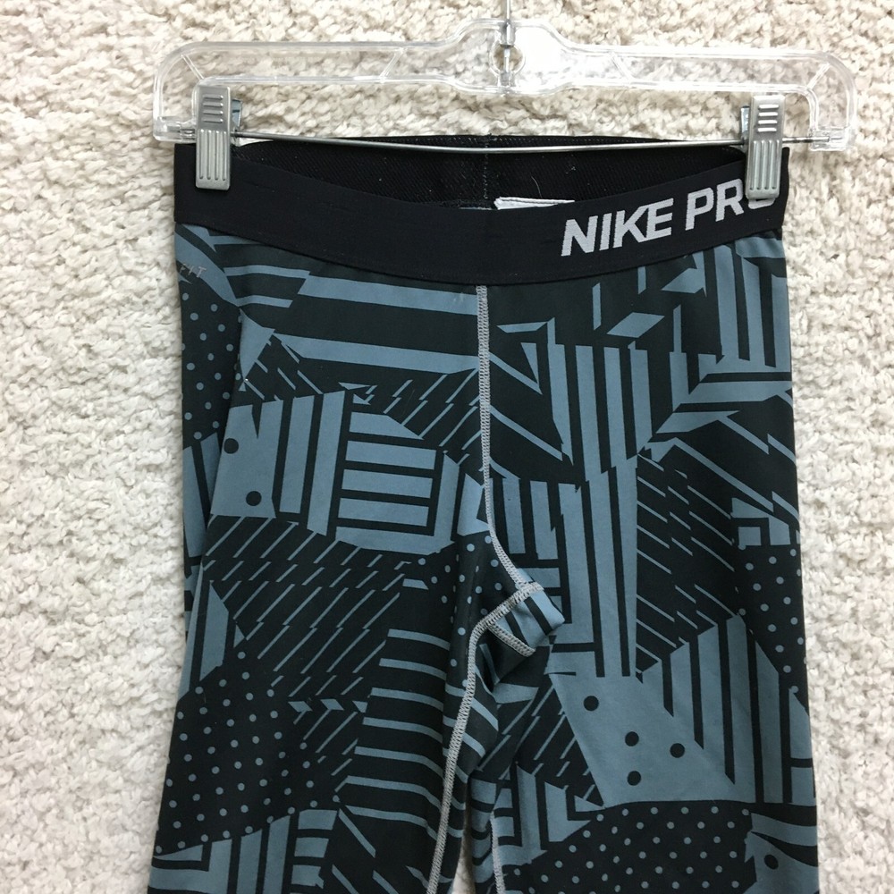 Season: Fall, Spring, Summer Brand: Nike Features: Breathable, Comfort, Compression, Easy Care, Elastic Waist, Stretch Country of Origin: Vietnam Pattern: Patchwork Fabric Wash: Dark Garment Care: Machine Washable Size: S Color: Blue Type: Leggings Inseam: 19 in Size Type: Regular Style: Capri Seller Notes: “Good Used Condition. Please, See Pictures for Full Condition and Measurements.” Accents: Logo Occasion: Activewear, Casual Fabric Type: Knit Performance/Activity: Cross Training, Gym & Training, Running & Jogging, Yoga Department: Women Material: Polyester, Spandex Waist Size: 24 in