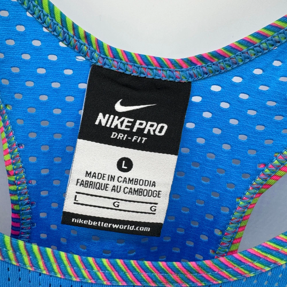 Nike Pro Tank Top Womens Large Dri Fit Hypercool Racerback Activewear Multicolor Very good condition, see all pictures for views. •Pit to pit: 17" •Shoulder to hem: 25" Ships out same day or next open postal day. Thank you for your purchase, we appreciate you!