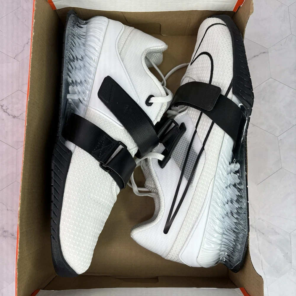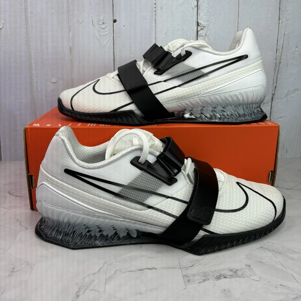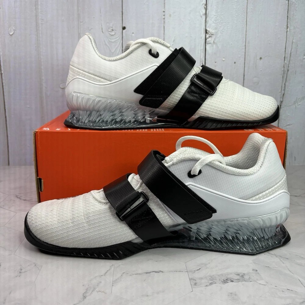 New with defects. New with box. There are some stains on the shoes which are pictured. Please look through all pictures thank you. *Box is missing lid* Nike Romaleos 4 White Black Mens Sz 11 Weightlifting Shoes CD3463-101 *No Lid*