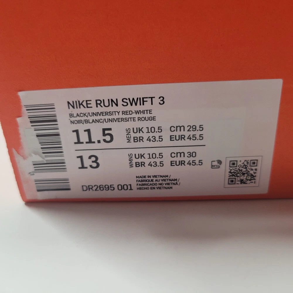 Nike Run Swift 3 Mens Shoes Size 11.5 Black Red DR2695-001 Running Basketball