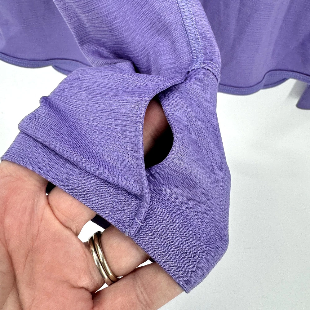 Nike Running Hoodie Womens Medium Purple Pullover Snap Neck Dri Fit + Thumbholes Activewear Long Sleeves Wool Blend Very good condition, see all pictures for views. •Pit to pit: 17" •Shoulder to hem: 26" Ships out same day or next open postal day. Thank you for your purchase, we appreciate you!