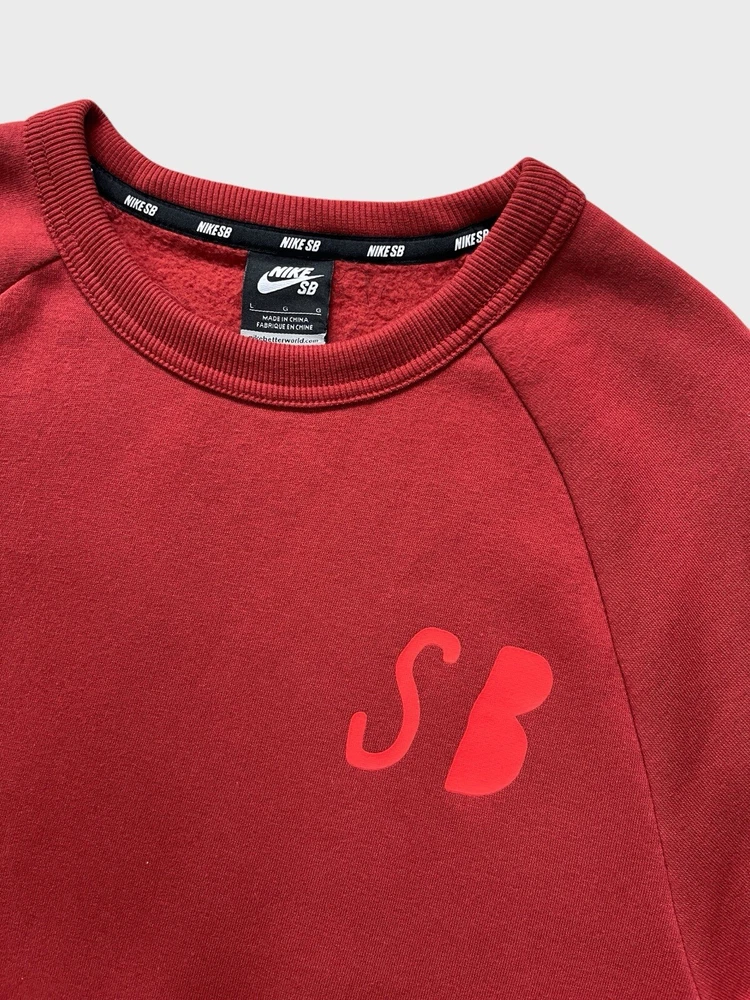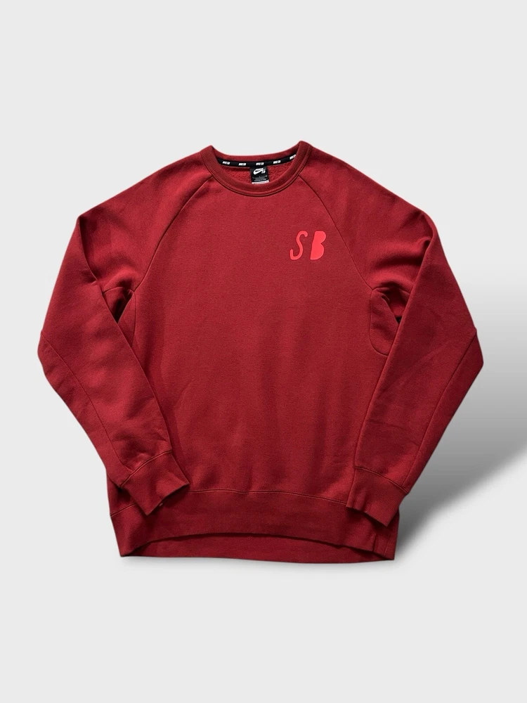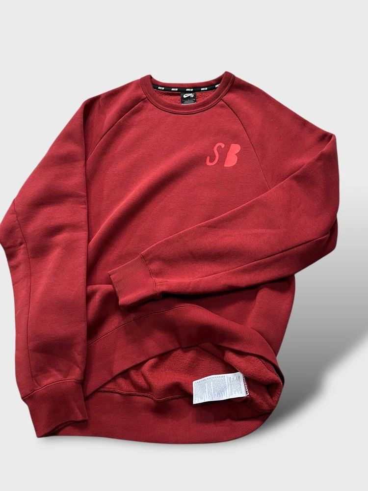Nike SB graphic sweatshirt | red ๐ก like new condition- mint, no signs of wear whatsoever, possibly unworn (the lining is still like a sweatshirt from the shop indicating it hasn't been washed once yet) ๐ก graphic print on chest and the back ๐ก ribbed crew neck, cuffs and hem ๐ก 78% cotton 22% polyester 2% elastane ๐ size L p2p 23" l28"