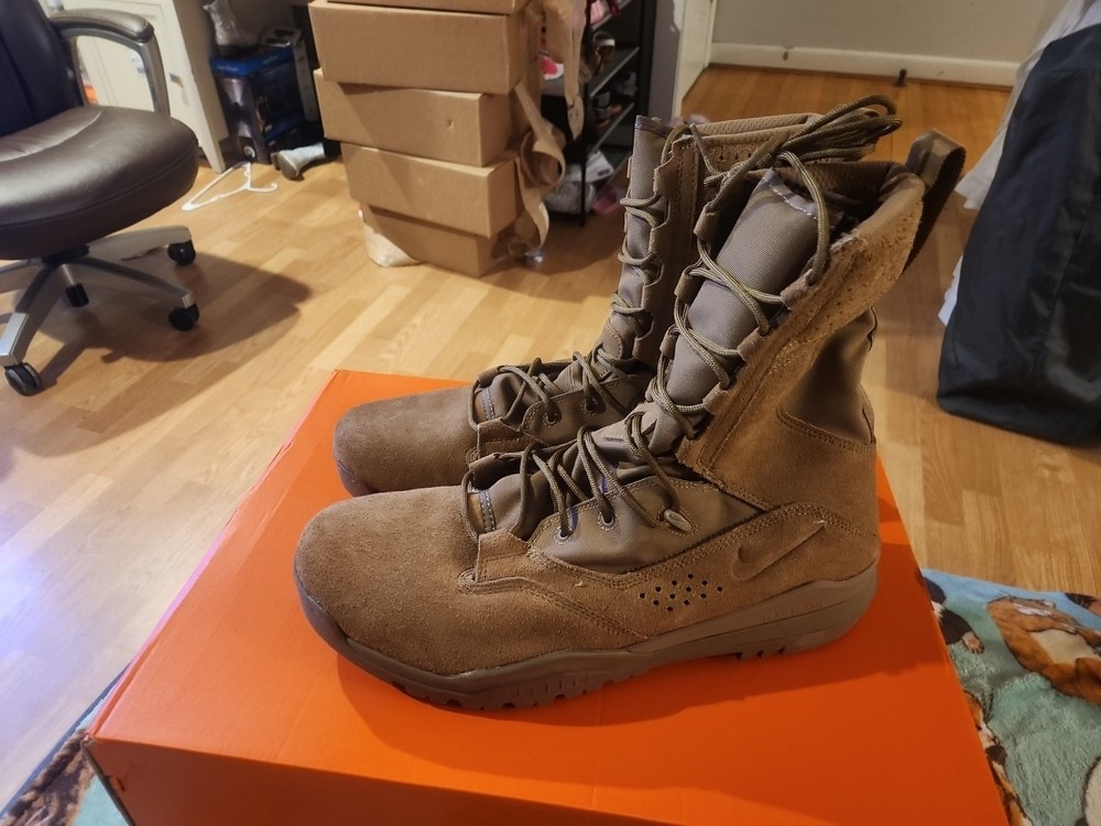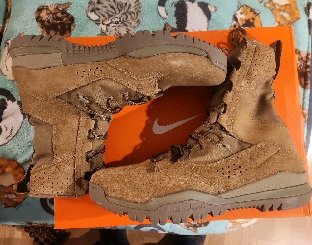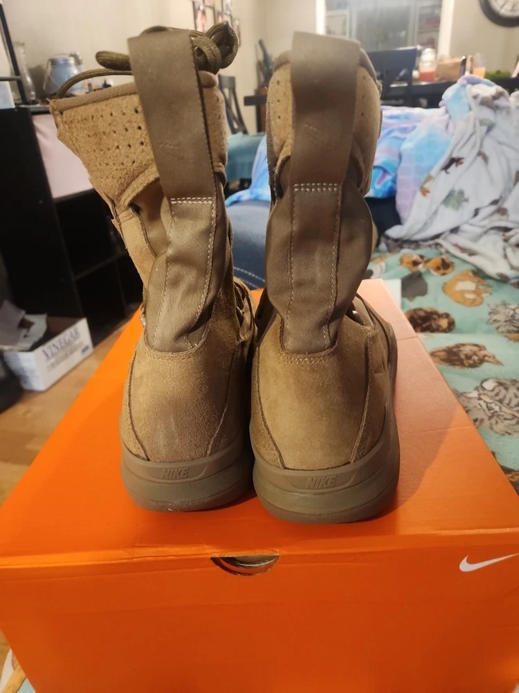 Elevate your outdoor and military game with these Nike SFB 2 8" leather boots. Designed with a mid-top shaft style, these boots are perfect for hiking, hunting, and other outdoor activities. The brown color and suede and leather upper material provide a stylish look that can be dressed up or down. These boots are customized and come in a size 14 with a medium width. The style code for this product is AQ1202-900. Perfect for all seasons, these boots are a great addition to any wardrobe. Whether you're heading to the mountains or the battlefield, these Nike SFB 2 8" boots have got you covered.
