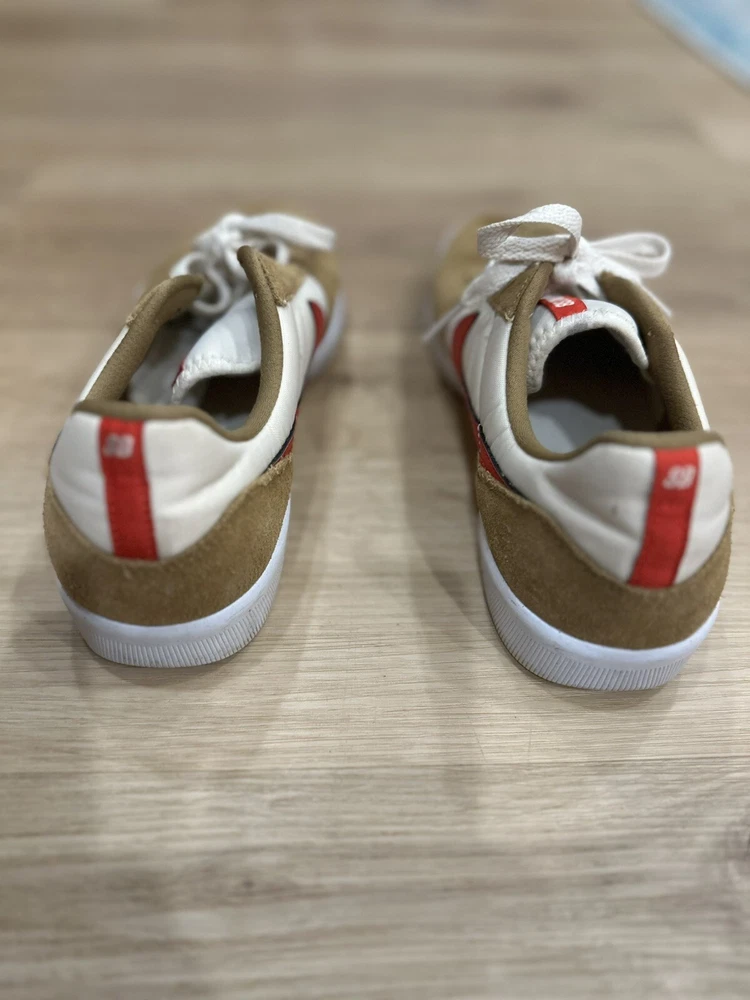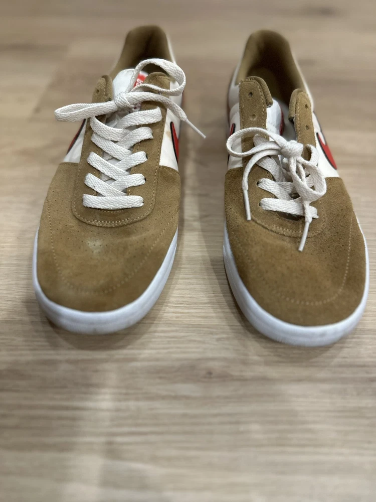 Elevate your shoe game with these Nike SB Team Classic Mars Yard Color Way sneakers in a stylish golden beige and red design. These shoes are perfect for both casual and activewear occasions, with a low top shoe shaft style and lace-up closure for a comfortable fit. The cushioned and comfortable features of these skate shoes make them ideal for school, cross-training, running, and jogging. Crafted from high-quality leather and fabric materials, these sneakers have a rubber outsole and foam insole for durable and lasting wear. The solid pattern and colorful theme of these shoes make them a great addition to any wardrobe. Whether you're looking for a stylish and comfortable pair of sneakers for the summer, fall, spring, or winter seasons, these Nike SB Team Classic Mars Yard Color Way sneakers are the perfect choice.