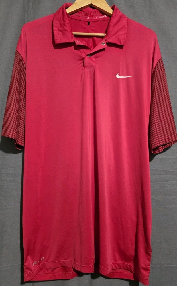 Brand: Nike Occasion: Casual Garment Care: Machine Washable Fit: Regular Season: Fall, Spring, Summer Closure: Snap Size Type: Regular Model: Nike Dri-Fit Material: Polyester Personalize: No Pattern: Solid Department: Men Collar Style: Spread Performance/Activity: Golf Theme: 90s, Classic, Logo, Sports, pga, tour, masters Neckline: Collared Accents: Logo Vintage: No Type: Polo Country of Origin: Vietnam Features: Breathable, Easy Care, Lightweight, Stretch Fabric Wash: Medium Sleeve Length: Short Sleeve gtin13: Does not apply Size: XL UPC: Does not apply Color: Red Handmade: No Fabric Type: Blended Fabric Product Line: Nike Tiger Woods