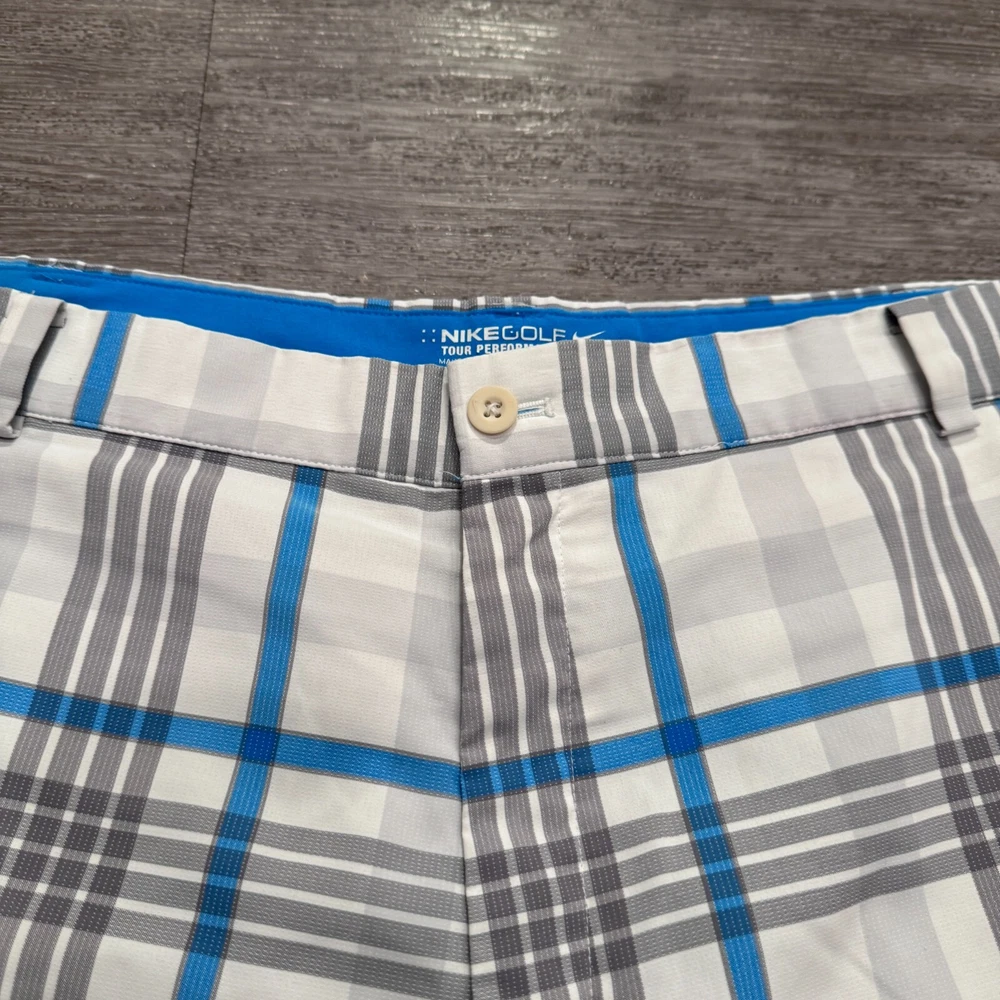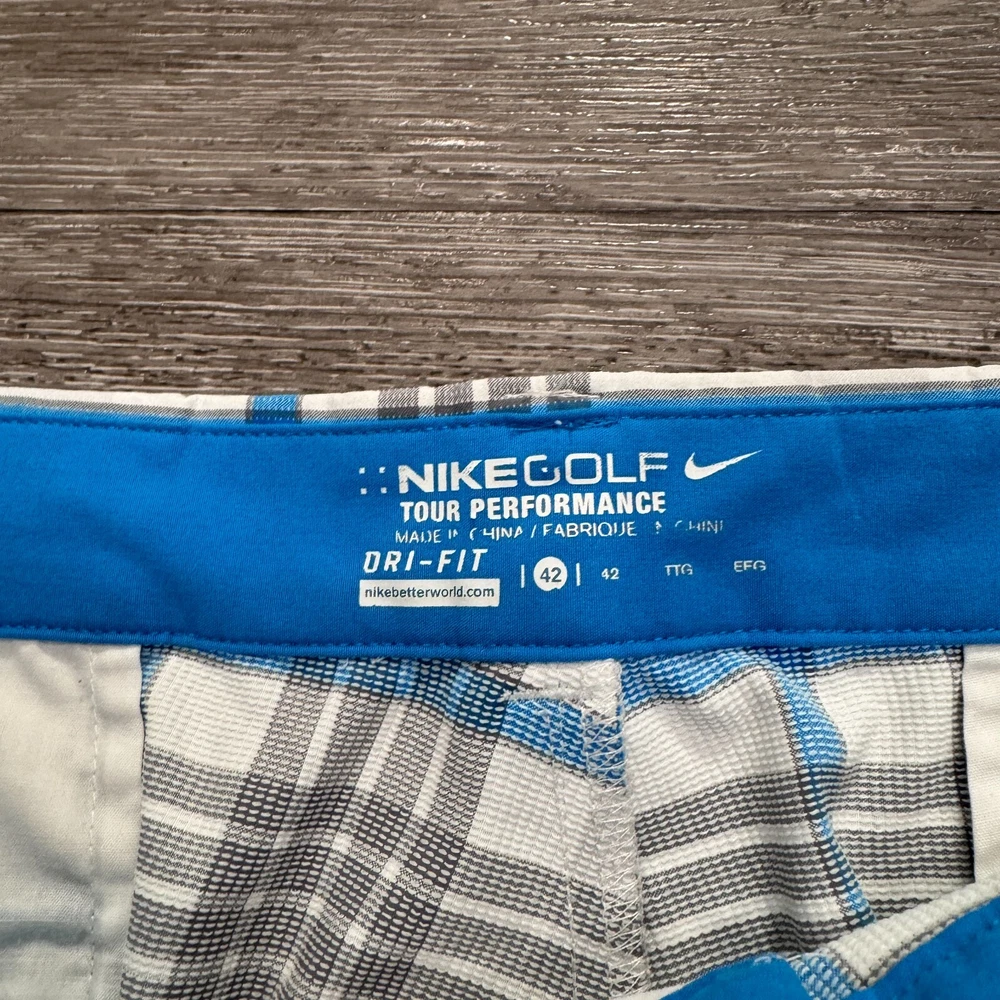 Nike Shorts Mens 42 Blue White Plaid Golf Tour Performance Dri Fit Outdoor Adult