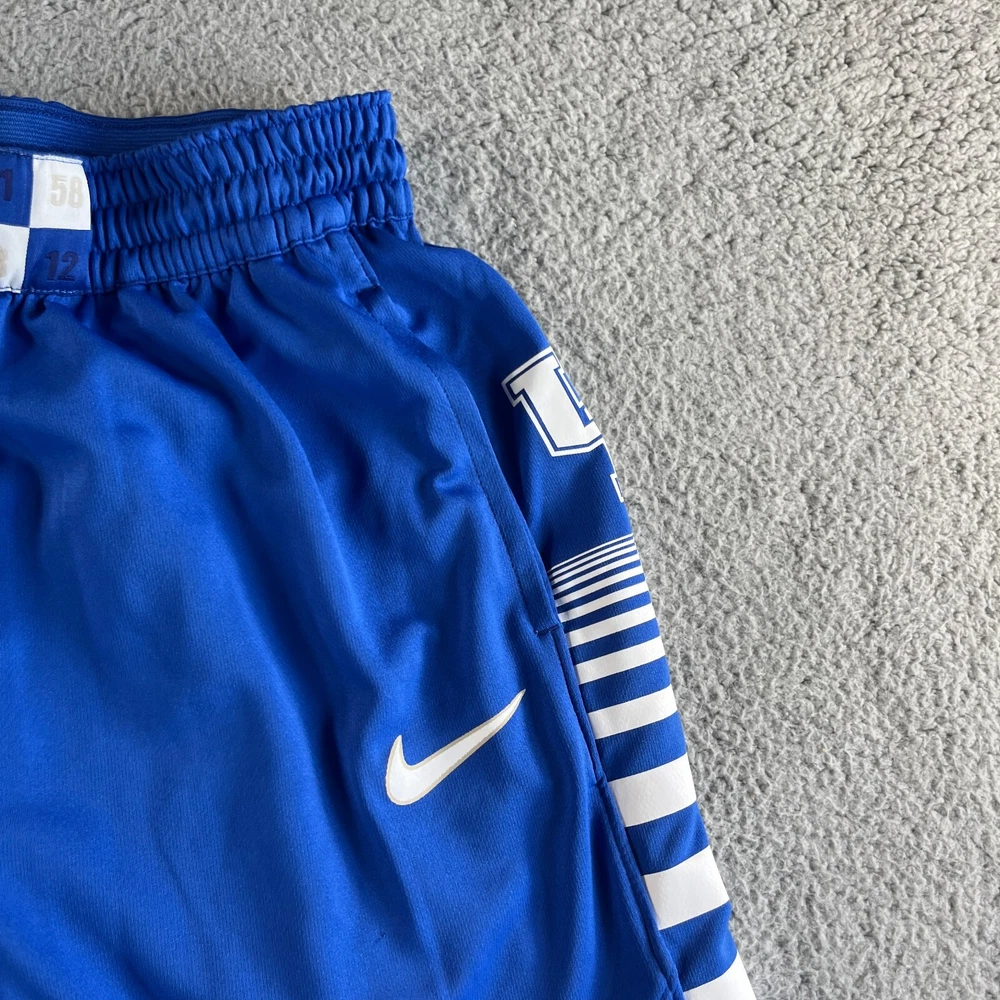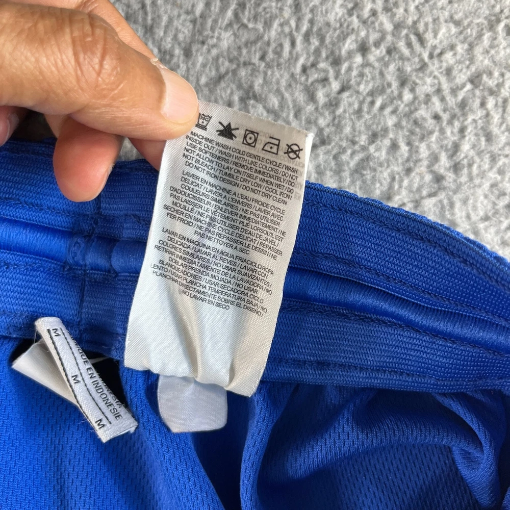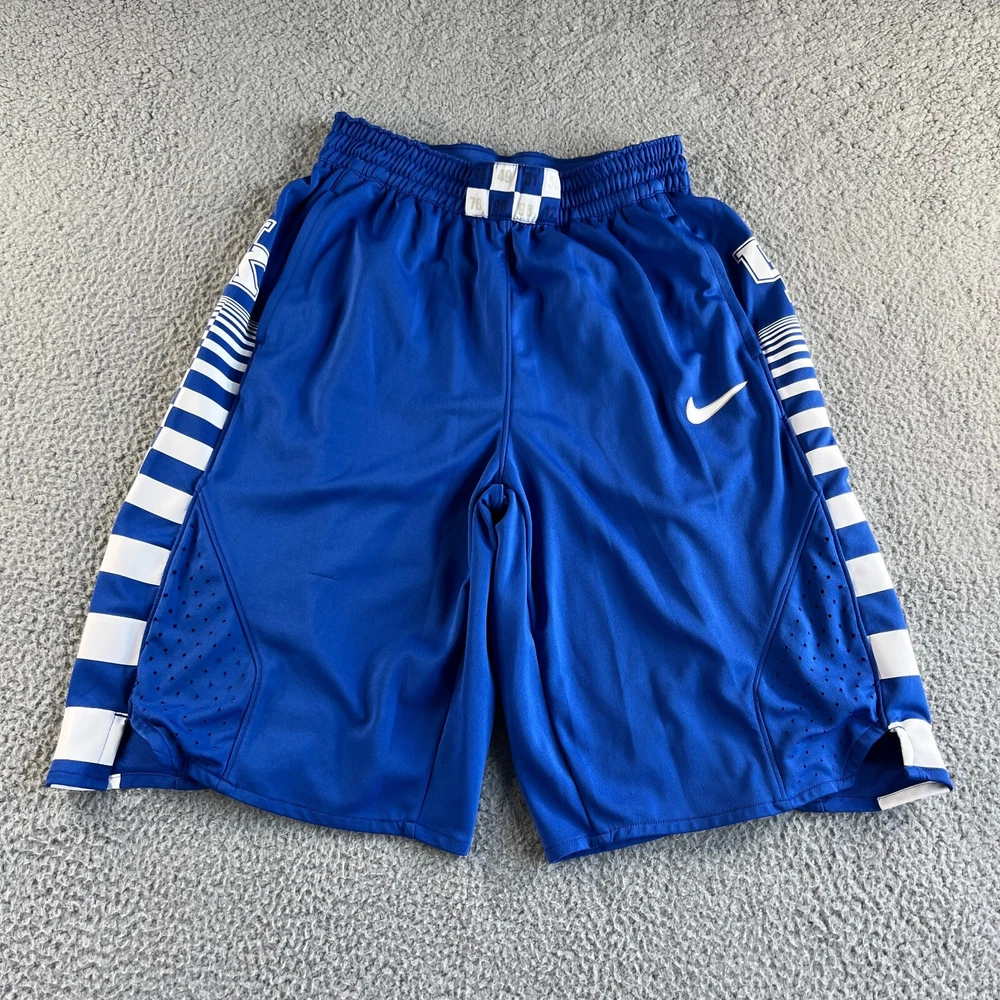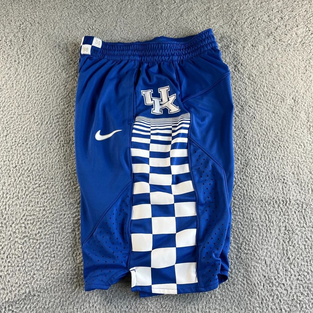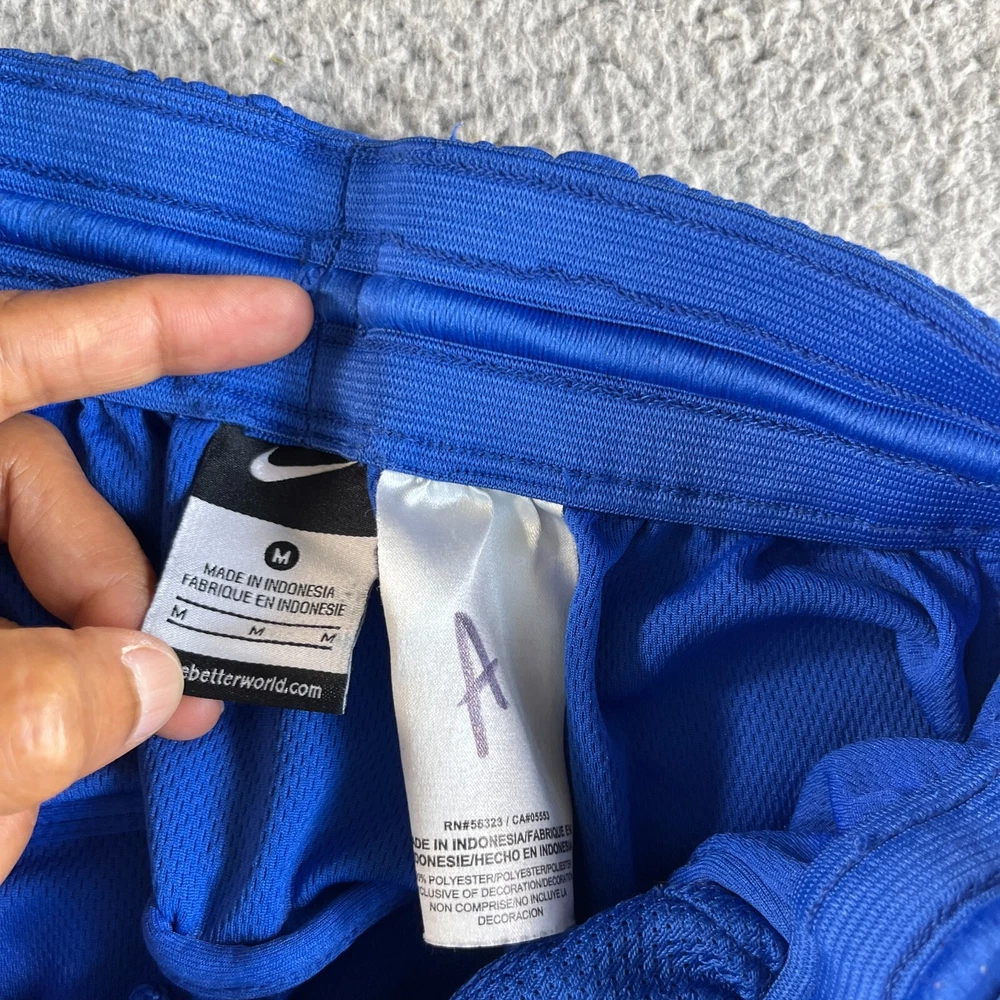 Inseam: 12 in Fit: Regular Features: Breathable, Comfort, Elastic Waist, Moisture Wicking, Quick Dry Pattern: Check Fabric Type: Woven Department: Men Theme: Outdoor, Sports Waist Size: 28 in Closure: Drawstring Size Type: Regular Material: 100% Polyester Occasion: Activewear, Casual, Travel Season: Fall, Spring, Summer Style: Athletic Size: M Brand: Nike Color: Blue Performance/Activity: Basketball, Bodybuilding, CrossFit, Cross Training, Cycling, Gym & Training, Running & Jogging, Walking