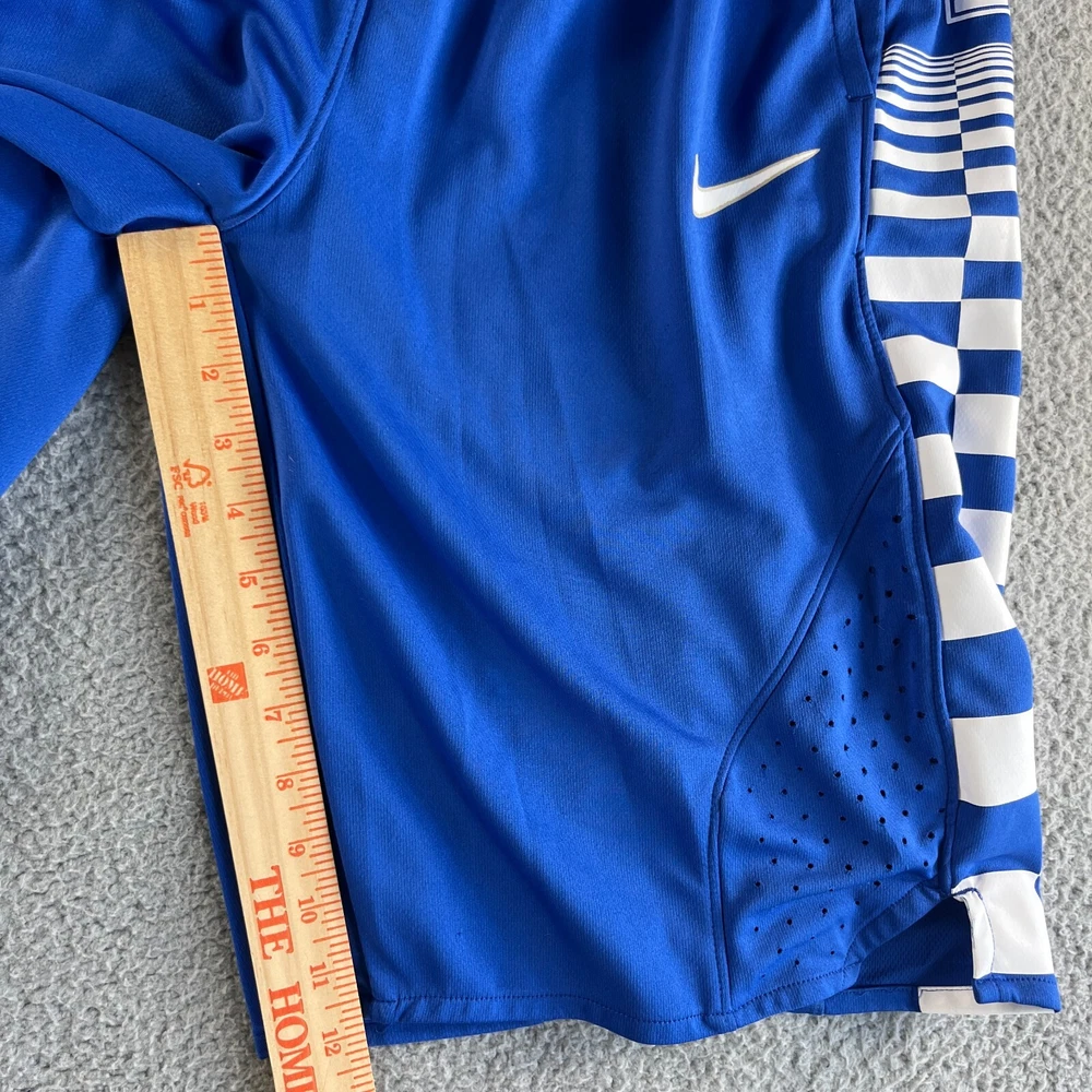 Nike Shorts Mens Medium Blue White Check Athletic Swoosh Run Train UK Graphic Condition: Pre-owned. A hole/open seam on rear side shown in photos. Please see all photos for condition and measurements. Please let us know if you have any questions. Thanks for shopping with us.