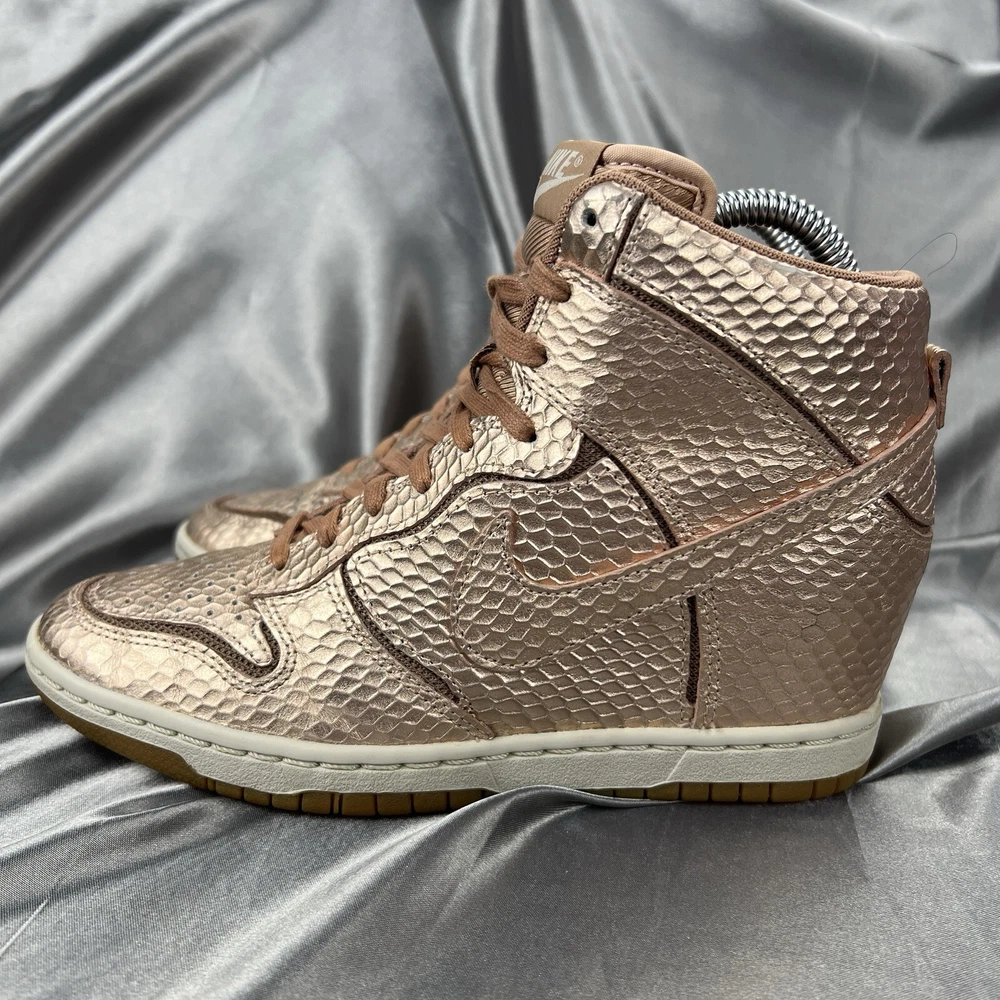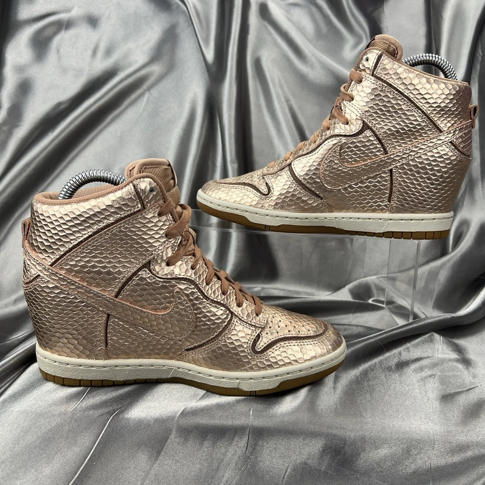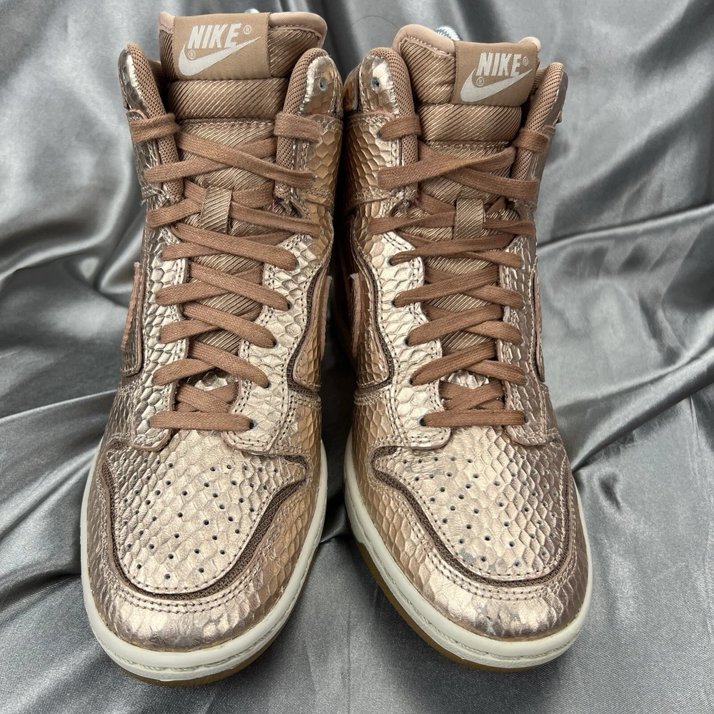 Nike Sky Hi Dunk Women’s Sz 6.5 Hidden Wedge Snake Metallic Rose Gold 644411-900 Athletic Activewear Streetwear Fashion Sneakers Shoes Condition shown in photos Please make sure to view and zoom in on all photos to determine the condition of the shoes. 🧼 Shoes have been cleaned and sanitized to meet the platform standards Questions? Want more pics? Send a DM 🙂 📬 Ships same day or within 24/hrs! 🥳 Full refunds will be given for returned items sent in original condition.