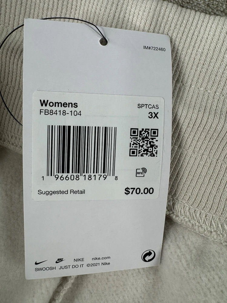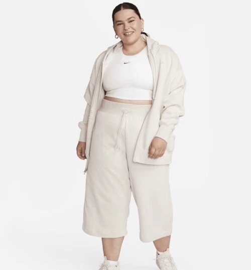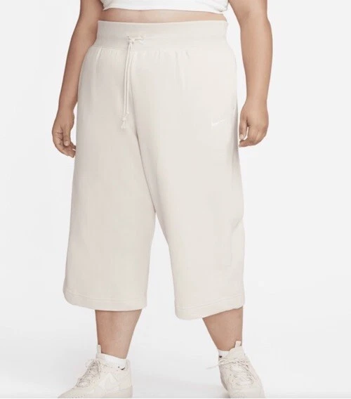 New Elevate your activewear game with these Nike Sportswear Phoenix Fleece Women's High-Waisted Cropped Sweatpants in size 3XL. The drawstring closure and wide-leg style ensure a comfortable and secure fit during any performance or activity, whether it be gym and training, walking, or running and jogging. The pants are made of a polyester and cotton blend with a fleece fabric type, making them perfect for any season, whether it be winter, summer, fall, or spring. These pants feature an oversized design, compression area in the waist, and pockets for added convenience. The white color and Nike logo make them a stylish addition to any athleisure outfit. Machine washable for easy care, these pants are a must-have for any active woman's wardrobe.
