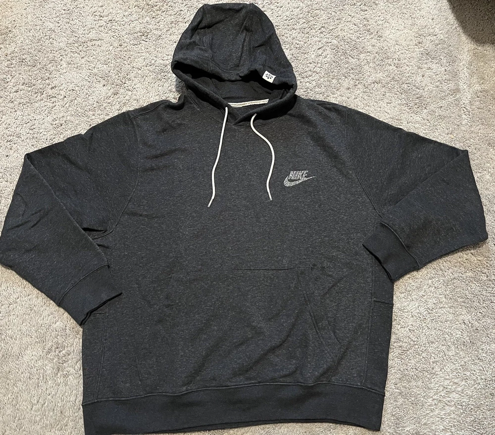 Elevate your casual wardrobe with the Nike Sportswear Recycled Fleece Hoodie in a sleek black color. The hoodie is designed for men with a relaxed fit and long sleeves, making it perfect for a cozy and stylish look. The cotton blend material and fleece fabric type provide comfort and warmth, while the classic Nike logo adds a touch of sporty flair. This pullover hoodie is part of the Nike Sportswear product line and comes in a size XL. It features a timeless design that pairs well with jeans or joggers for a laid-back outfit. With its versatile style and the Nike brand's reputation for quality, this hoodie is a must-have for any fashion-conscious individual. Check out the matching pants in my shop as well!