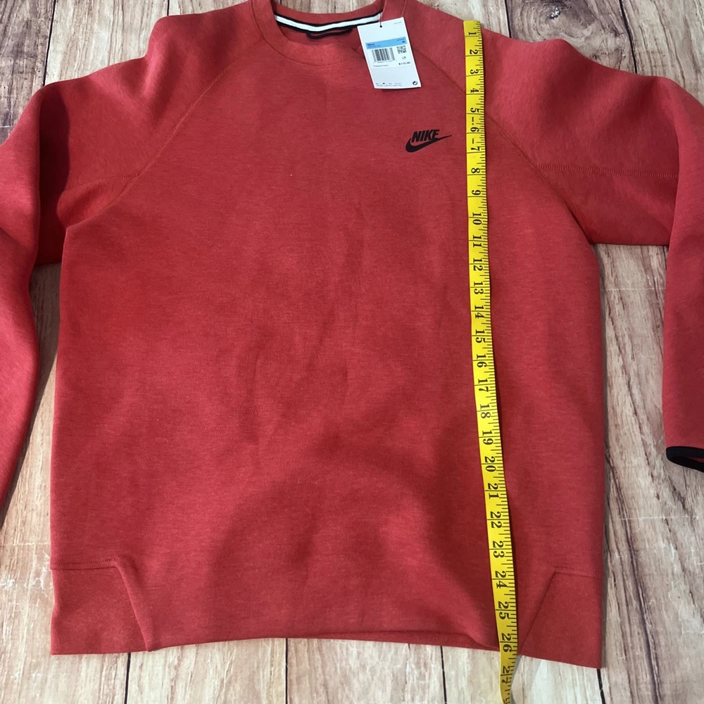 The Nike Sportswear Tech Fleece Crewneck Sweatshirt in Red Heather is a stylish and comfortable pullover sweatshirt designed for men. Made from cozy fleece fabric, this sweatshirt features the iconic Nike swoosh logo and is part of the Nike Sportswear product line. The regular fit and medium size make it a versatile addition to any active wardrobe, perfect for casual wear or workouts. With its classic red color and quality construction, this sweatshirt is a must-have for any Nike fan.