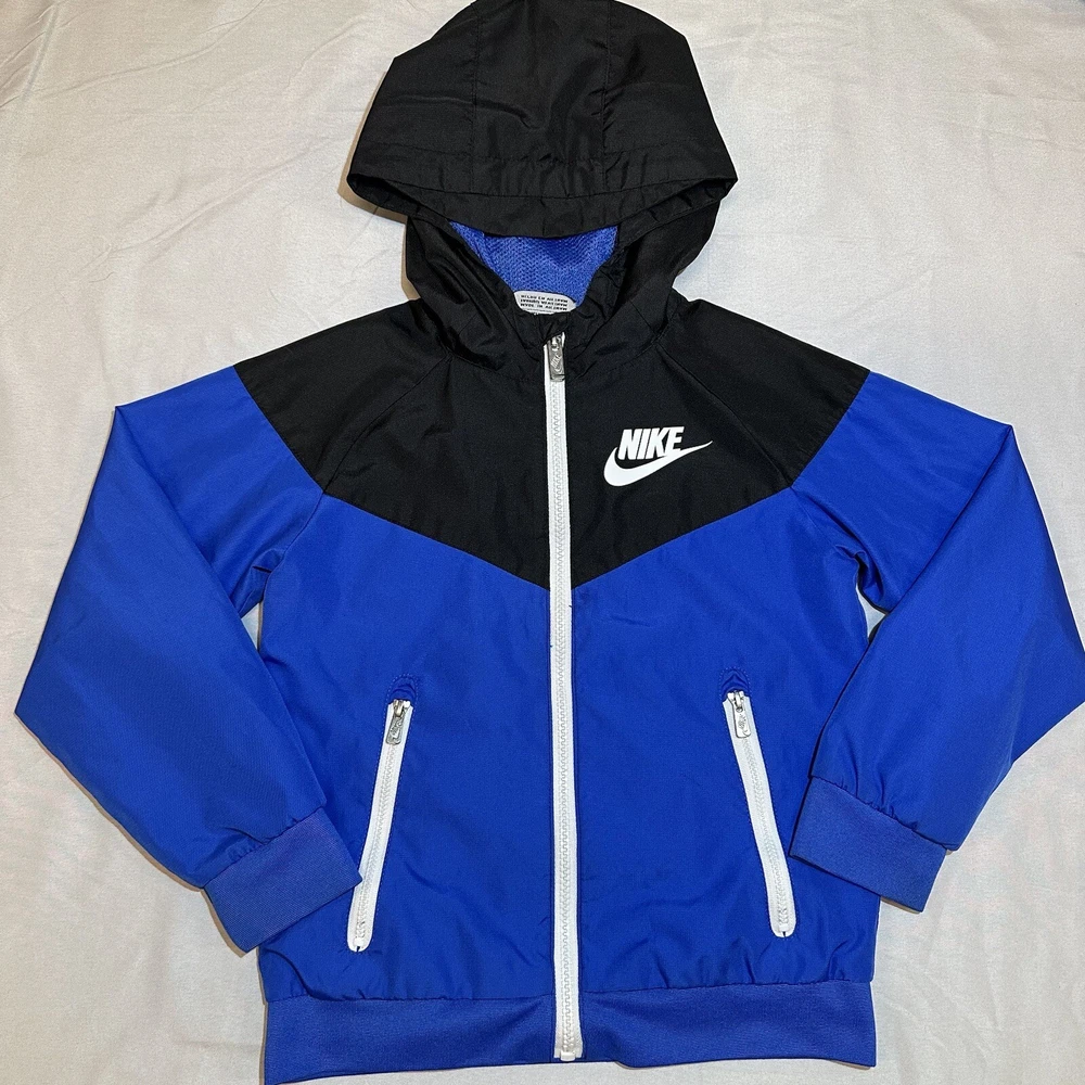 gtin13: Does not apply Closure: Zip Department: Unisex Kids Country/Region of Manufacture: Vietnam Color: Blue Fit: Regular Size: 5-6 Style: Track Jacket Size Type: Kids Pattern: Colorblock Lining Material: 100% Polyester Outer Shell Material: 100% Polyester Performance/Activity: Sportswear Type: Jacket UPC: Does not apply Occasion: Activewear, Casual, Travel Sleeve Length: Long Sleeve Features: Breathable, Full Zip, Hooded, Lightweight, Pockets Model: Nike Sportswear Windrunner Brand: Nike Character: Boy, Blue Vintage: No Season: Fall, Spring, Summer, Winter Fabric Type: Polyester Insulation Material: Polyester Material: Polyester Theme: Sports, Y2K, Streetwear, Athleisure, Logo, Swoosh