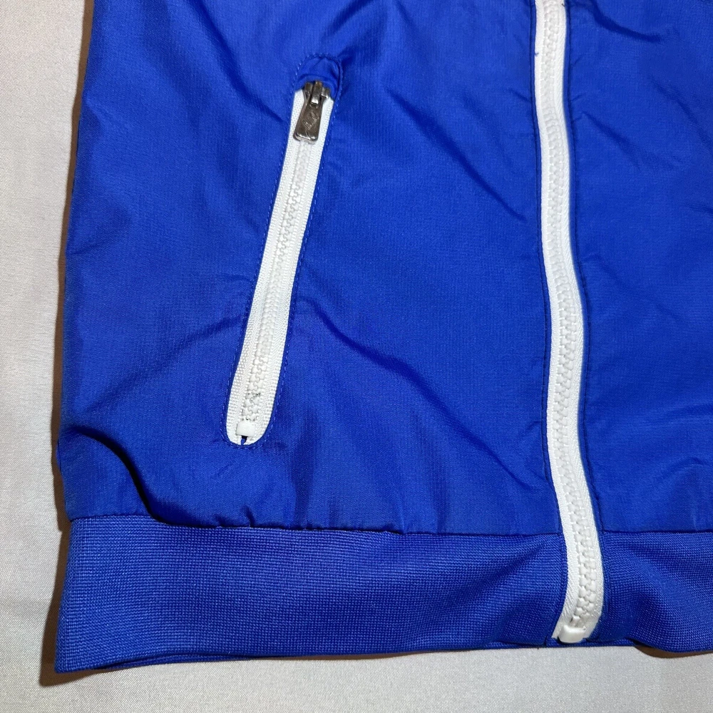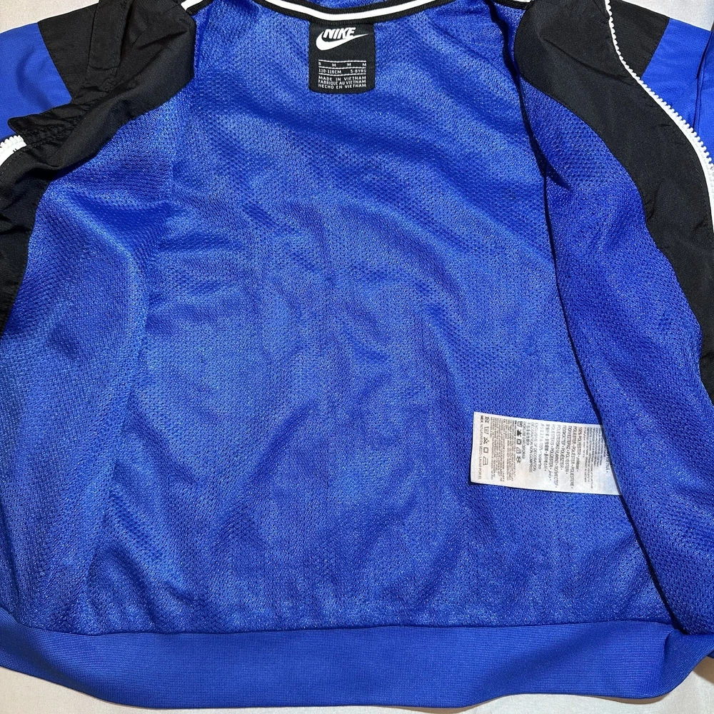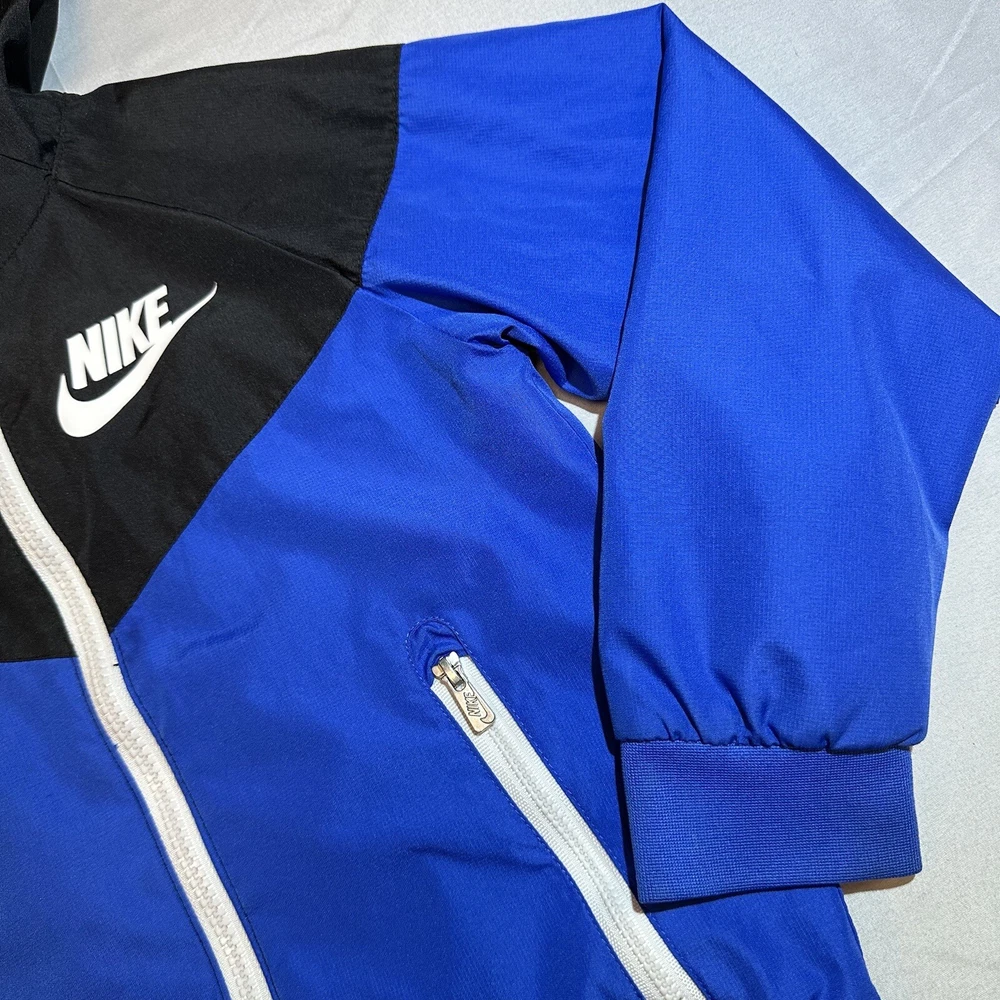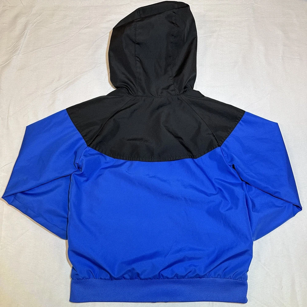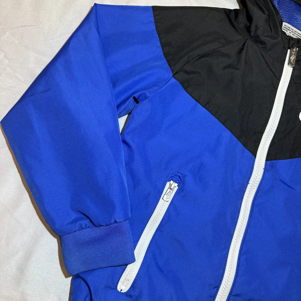 Nike Sportswear Windbreaker Track Jacket Youth 6 Blue Full Zip lined Hoodie Swoosh Y2K Seller does NOT accept returns. See photos for measurements & flaws. Sizes vary depending on manufacturer & era. Please review item description, flaws & sizing prior to purchasing.