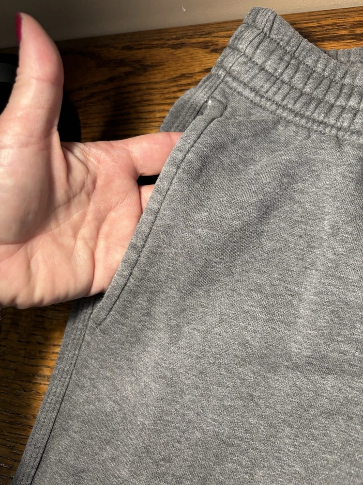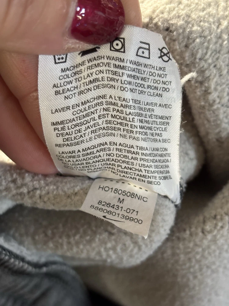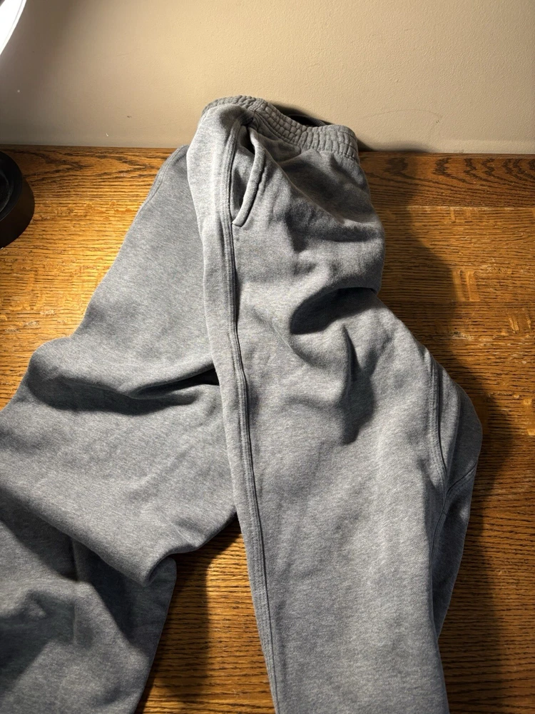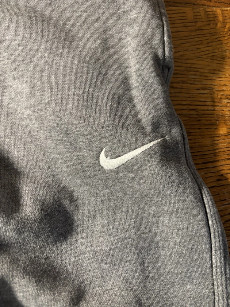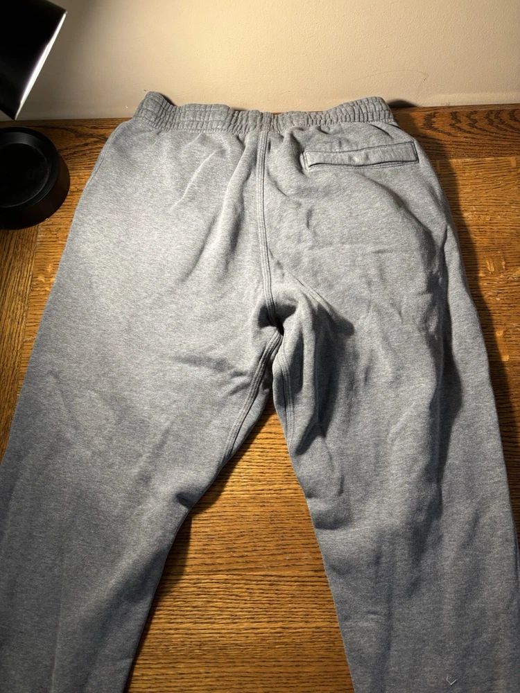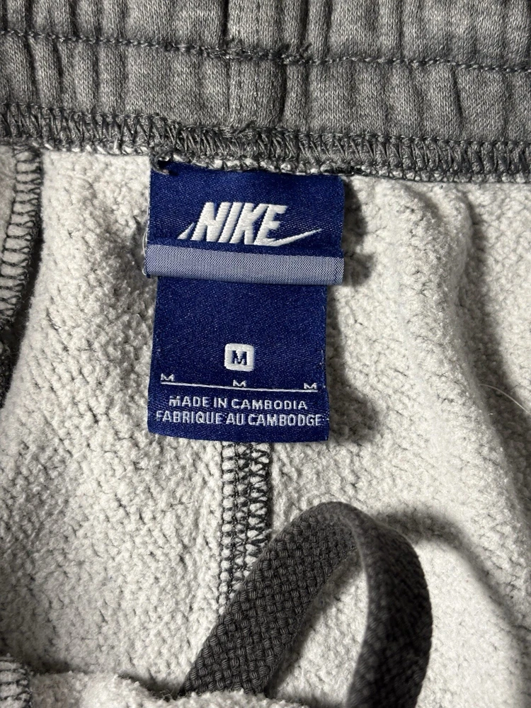 Garment Care: Machine Washable Features: Comfort, Easy Care, Pockets Season: Fall, Spring, Winter Performance/Activity: Basketball, CrossFit, Cross Training, Gym & Training, School, Soccer, Walking Inseam: 28 in Department: Men Personalize: No Waist Size: 28 in Style: Sweatpants Closure: Drawstring Occasion: Activewear Seller Notes: “good condition, some minor fraying at bottom of cuffs due to wear/age, no stains or holes seen” Country/Region of Manufacture: Cambodia Leg Style: Tapered Type: Pants Color: Gray Handmade: No Pattern: Solid Vintage: No Theme: Athleisure, Classic, Logo, Sports Brand: Nike MPN: 826431, 826431-063 Material: Cotton, Polyester Size: M Size Type: Regular Fit: Classic Fabric Type: Fleece