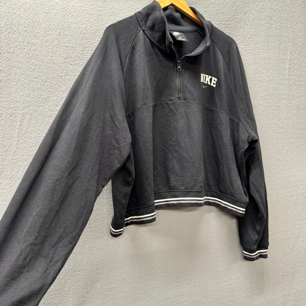 Nike Sweatshirt Womens 3X Black Cropped Pullover 1/4 Zip Mock Neck Athleisure Very good condition, see all pictures for views. •Pit to pit: 27" •Shoulder to hem: 22" Thank you for your purchase, we appreciate you!