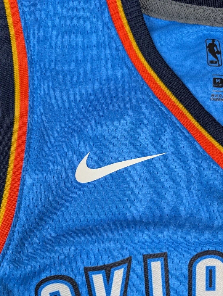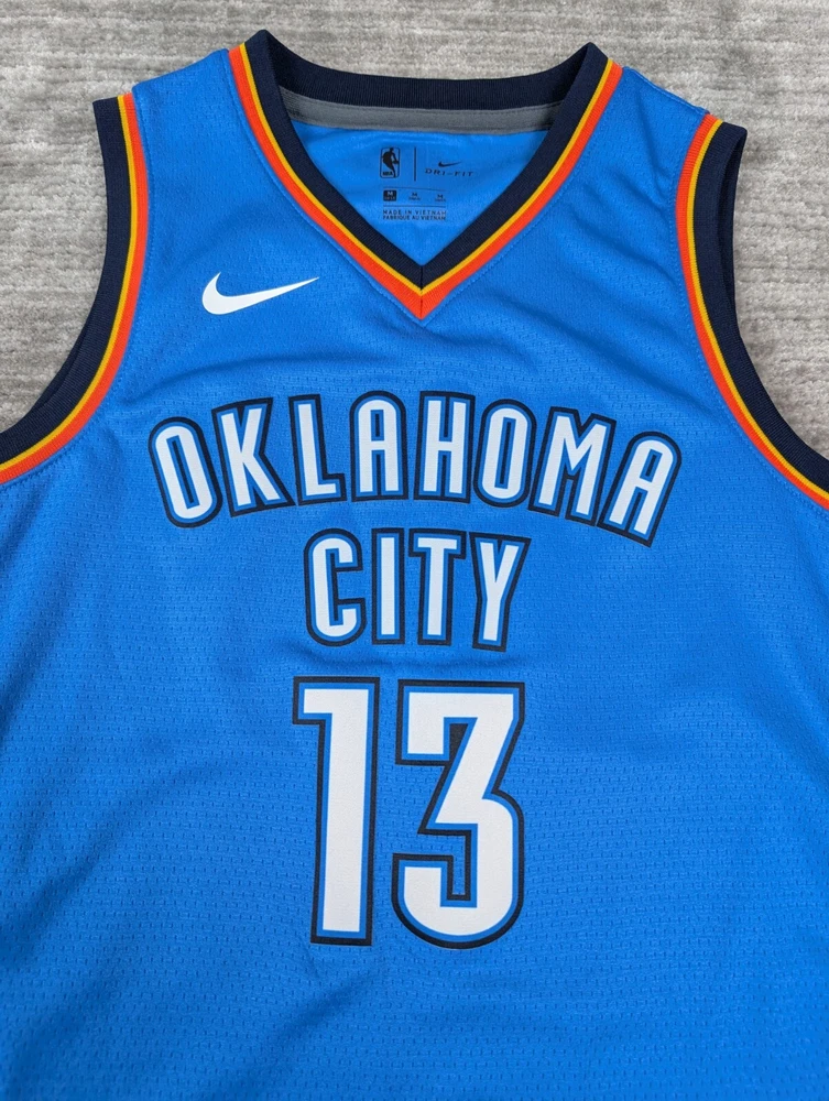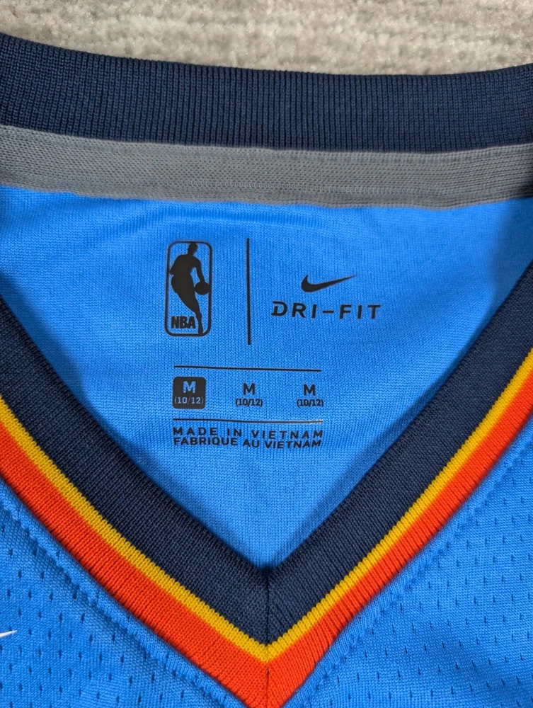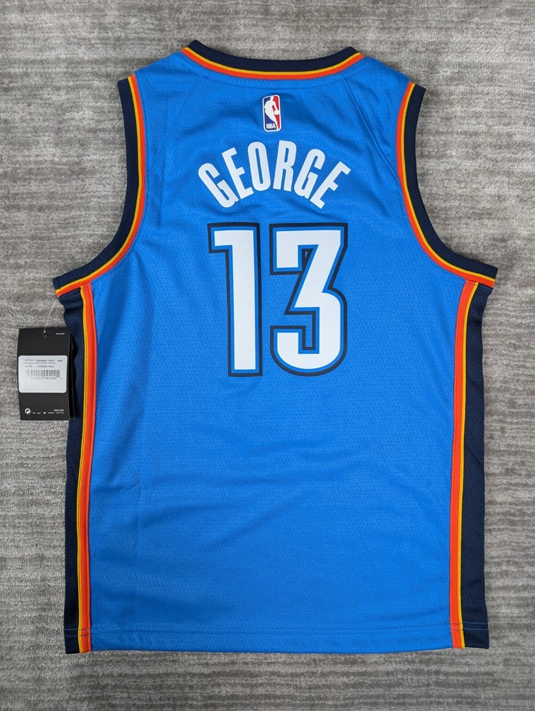 Gender:BoysLeague:National Basketball Association (NBA)Product:JerseySport:BasketballSize:MOfficially Licensed:YesTeam:Oklahoma City ThunderPlayer:Paul GeorgeColor:BlueBrand:Nike