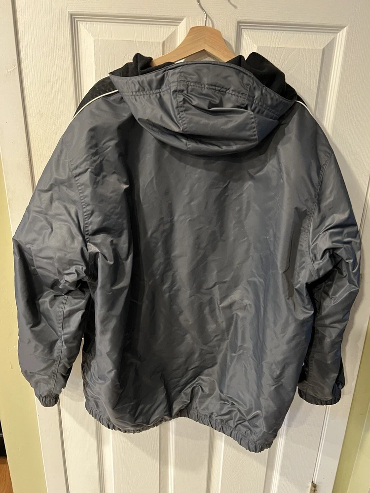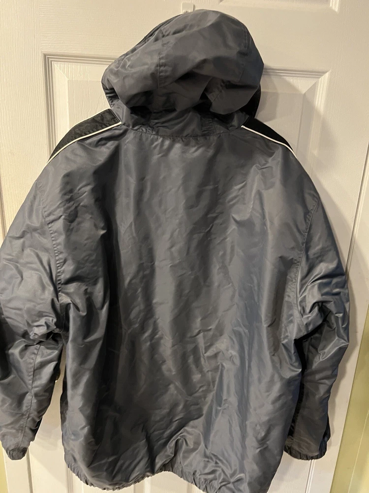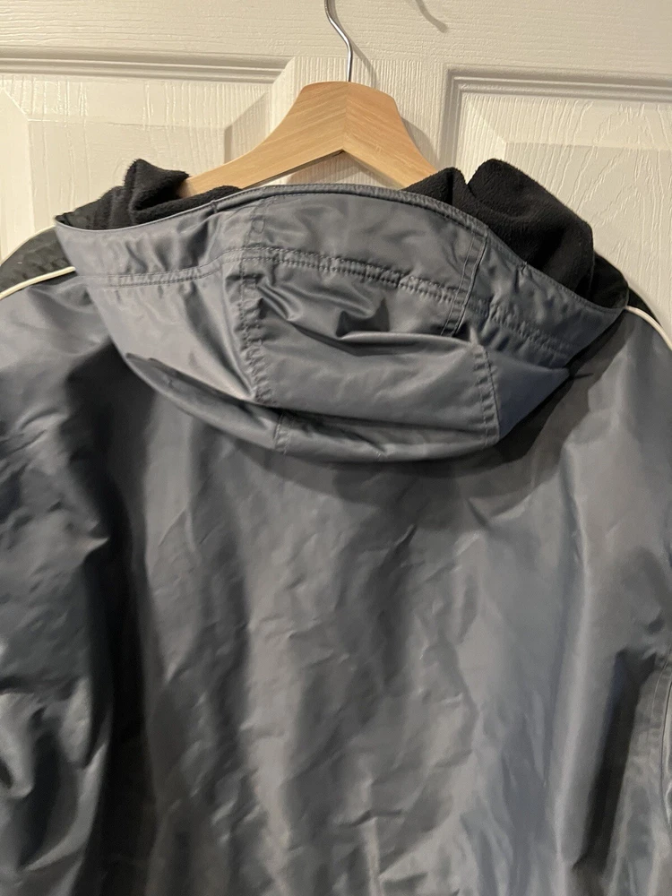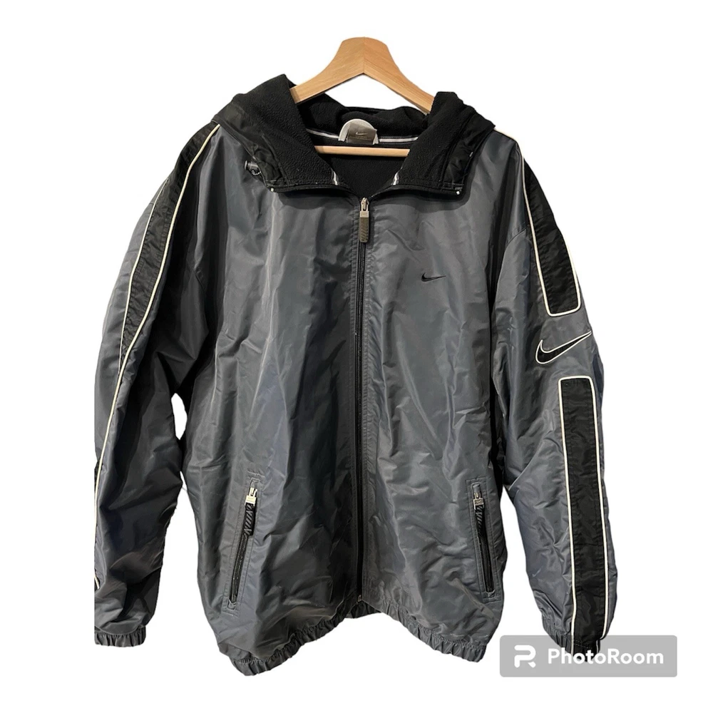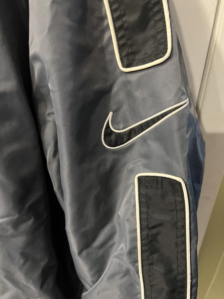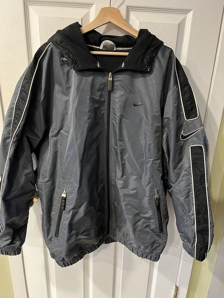 Vintage 90’s Nike Swoosh Hooded Parka Jacket Gray/black Men’s Size XL Rare. Pre owned- excellent condition Rare vintage jacket late 90’s Fleece lining for warmth Zipped pockets Elastic waistline and arm cuffs Adjustable hood No holes Pit to pit approx 27” Shoulder to hem approx 33”