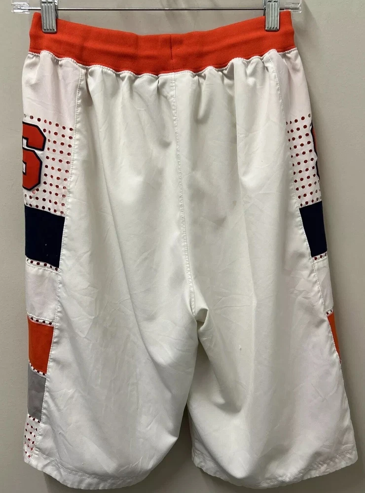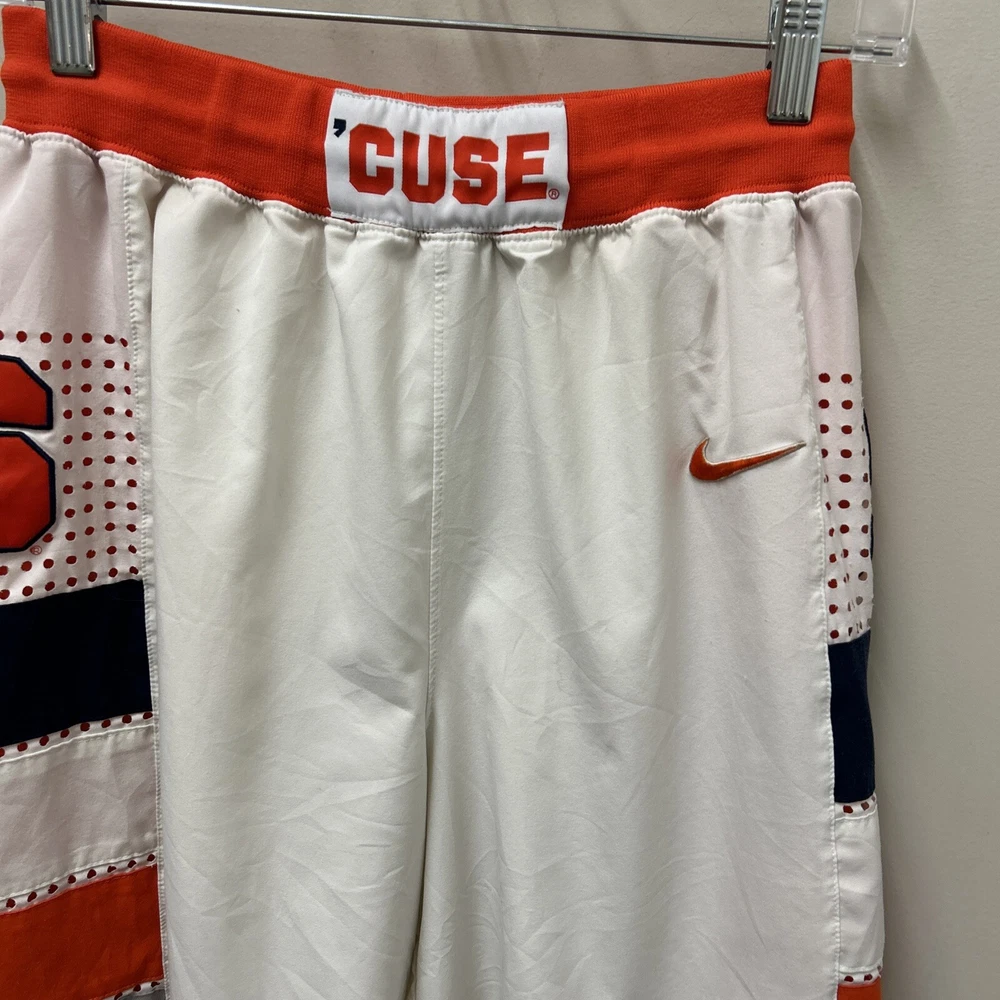 Nike Syracuse Mens Shorts S Orangemen College NCAA White Basketball Show your support for the Syracuse Orange with these Nike Men's Shorts in size S. Perfect for basketball fans, these shorts are designed for comfort and style. Made with high-quality materials, they are durable and will last you for many seasons to come. The white color and Nike branding make them a great addition to your collection of fan apparel. Whether you're at the game or out and about, these shorts will surely make you stand out. Get your hands on them now and show your love for the Syracuse Orange!