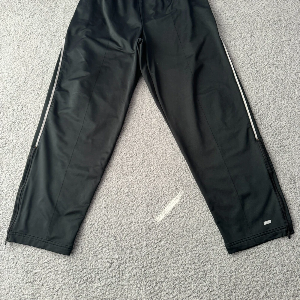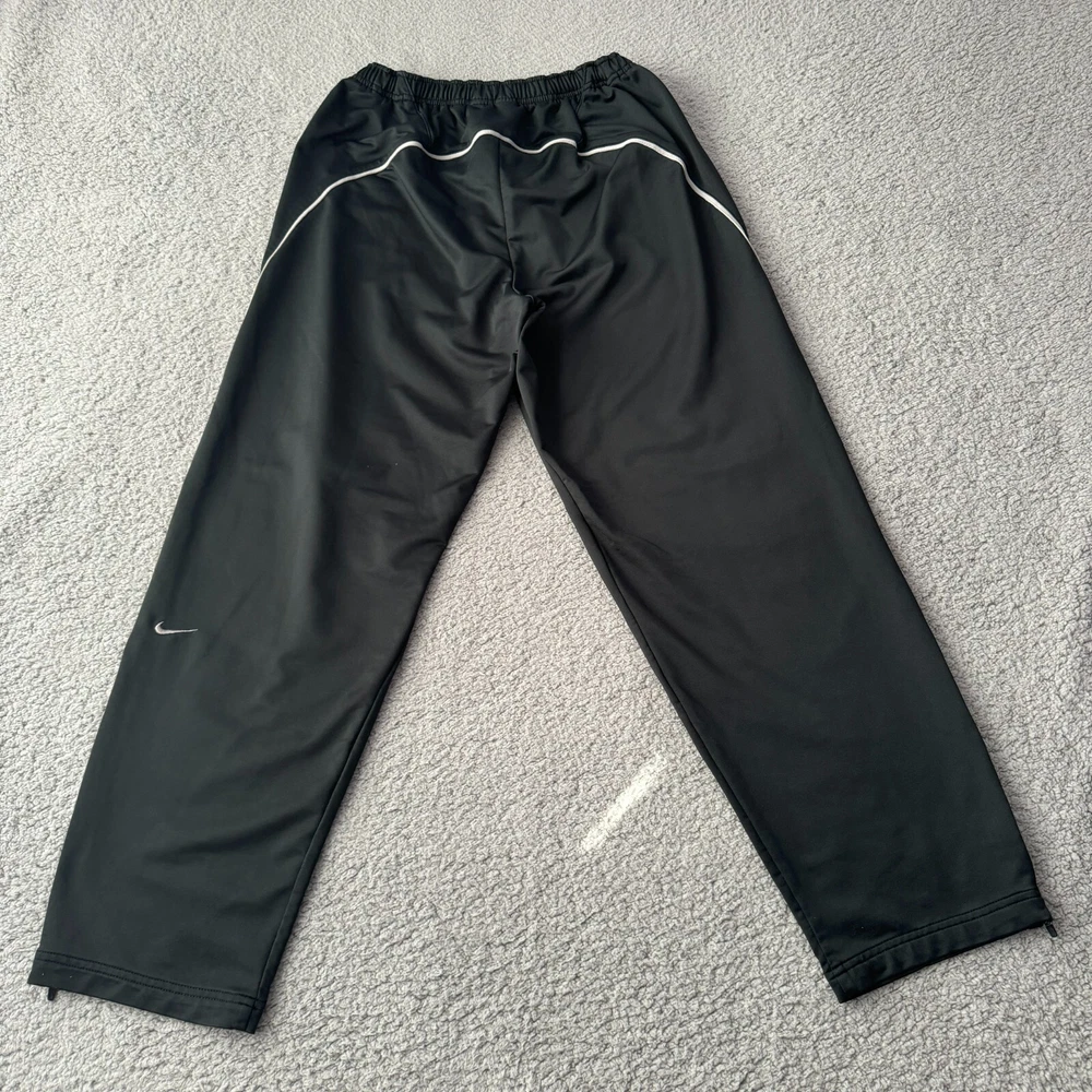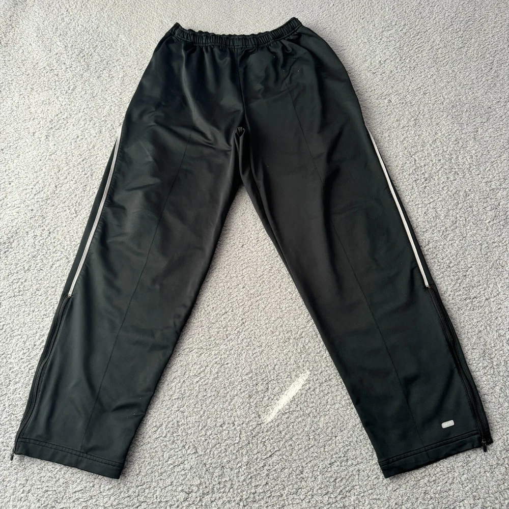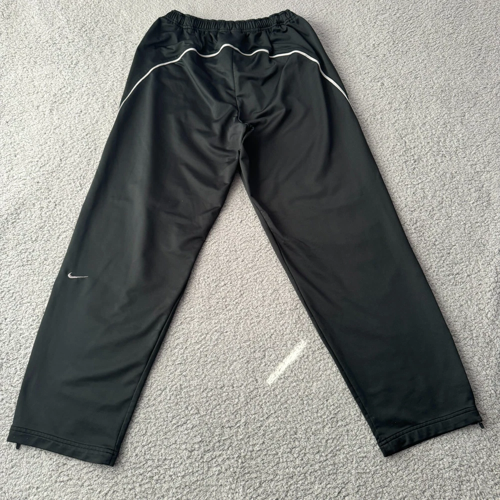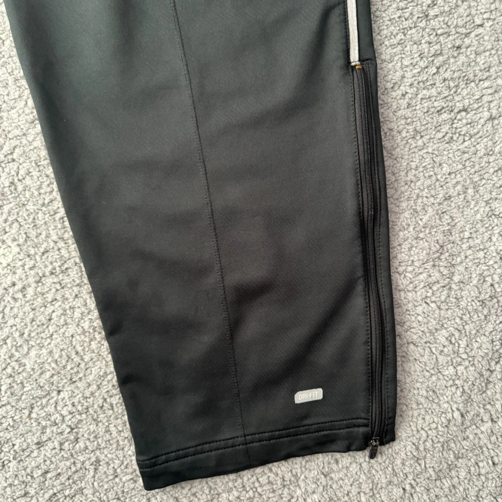 Occasion: Activewear, Casual, Travel Theme: Athleisure, Outdoor, Sports, Training, Gym Size Type: Regular Product Line: Nike Dri-FIT Size: L Fabric Type: Woven Department: Men Pattern: Striped Color: Black Performance/Activity: Basketball, Bodybuilding, Cheerleading, CrossFit, Cross Training, Cycling, Dance, Driving, Running & Jogging, Walking, Everyday Material: Polyester Brand: Nike Season: Fall, Spring, Winter Features: Ankle Zip, Comfort, Drawstring, Elastic Waist, Lined, Pockets Vintage: No Leg Style: Straight Type: Pants Seller Notes: “Pre-owned. Good condition. Please see all photos for condition and measurements.” Fit: Regular Inseam: 30.5 in Closure: Drawstring Style: Jogger