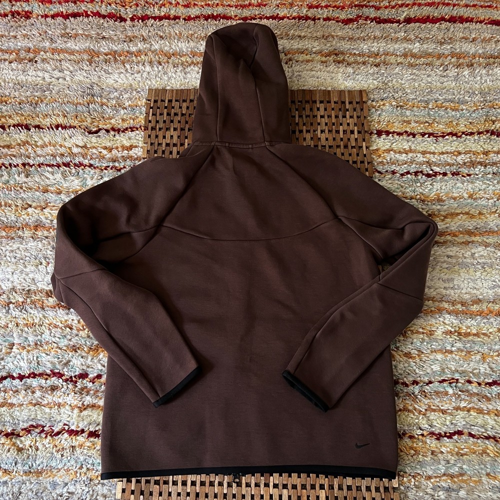 The Nike Tech Fleece Hoodie Hoody Jacket Sweatshirt in Brown Black is a stylish and comfortable addition to any man's wardrobe. Made with cotton fleece fabric, this hoodie features long sleeves and a full zip closure for easy wear. With its regular fit and hooded design, it is perfect for sports and gym activities in the fall, winter, and spring seasons. The Nike brand ensures quality and the color combination of brown and black adds a trendy touch to the classic hoodie style. Perfect for staying warm and fashionable during your active lifestyle.