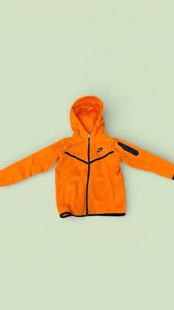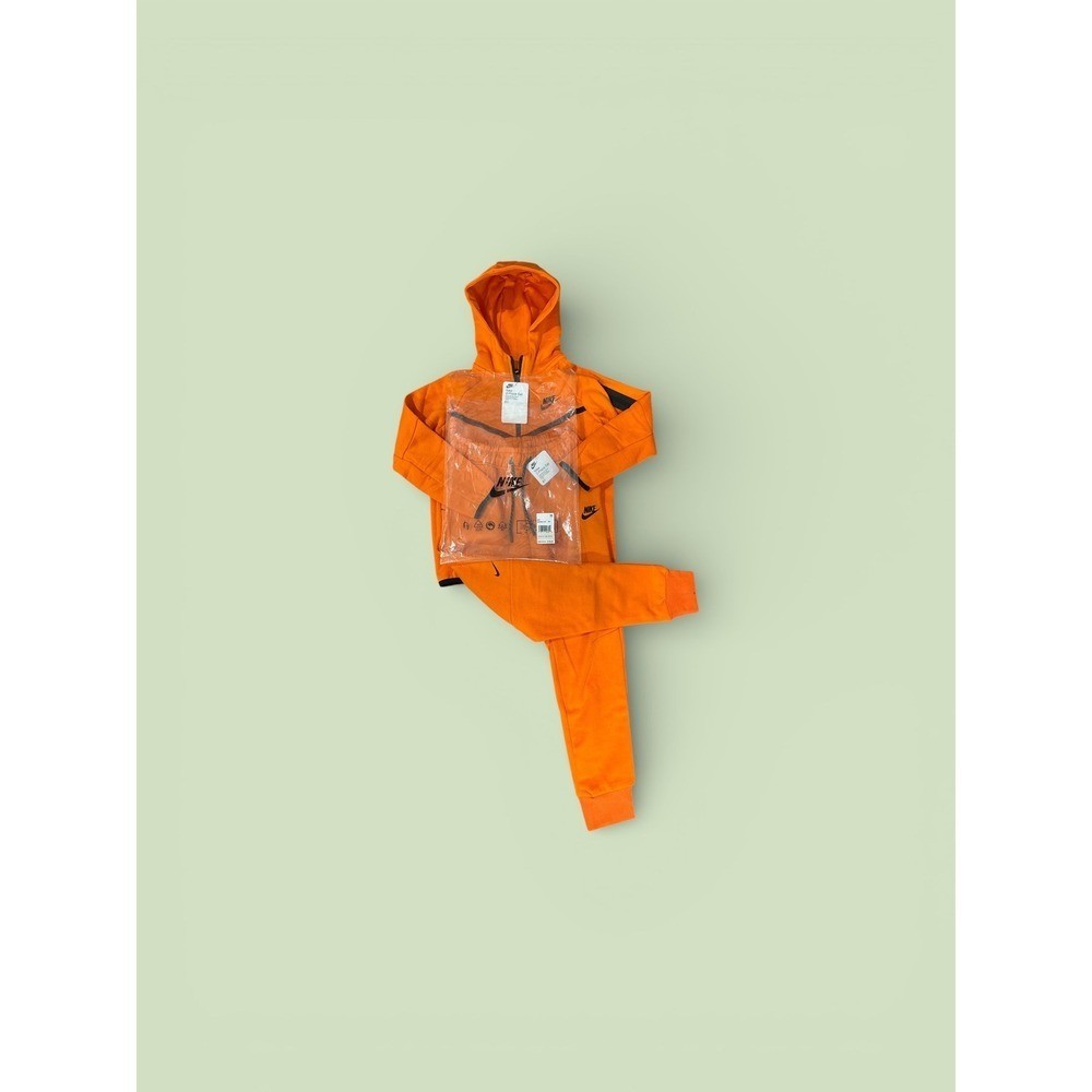 (Pictures above are for authentication, you will receive the exact size listed on item details. FAST SHIPPING !!!) Ignite your child's active style with this vibrant Nike Tech Fleece tracksuit set. The eye-catching orange hue radiates energy, while the signature Tech Fleece fabric provides lightweight warmth and superior comfort for all-day wear. The full-zip hoodie features a classic design with zippered pockets for secure storage, and the matching joggers boast a comfortable fit with a drawstring waist and cuffed ankles to keep everything in place. Perfect for playground adventures, school days, or casual outings, this set ensures your little one stays comfortable and looks effortlessly cool.