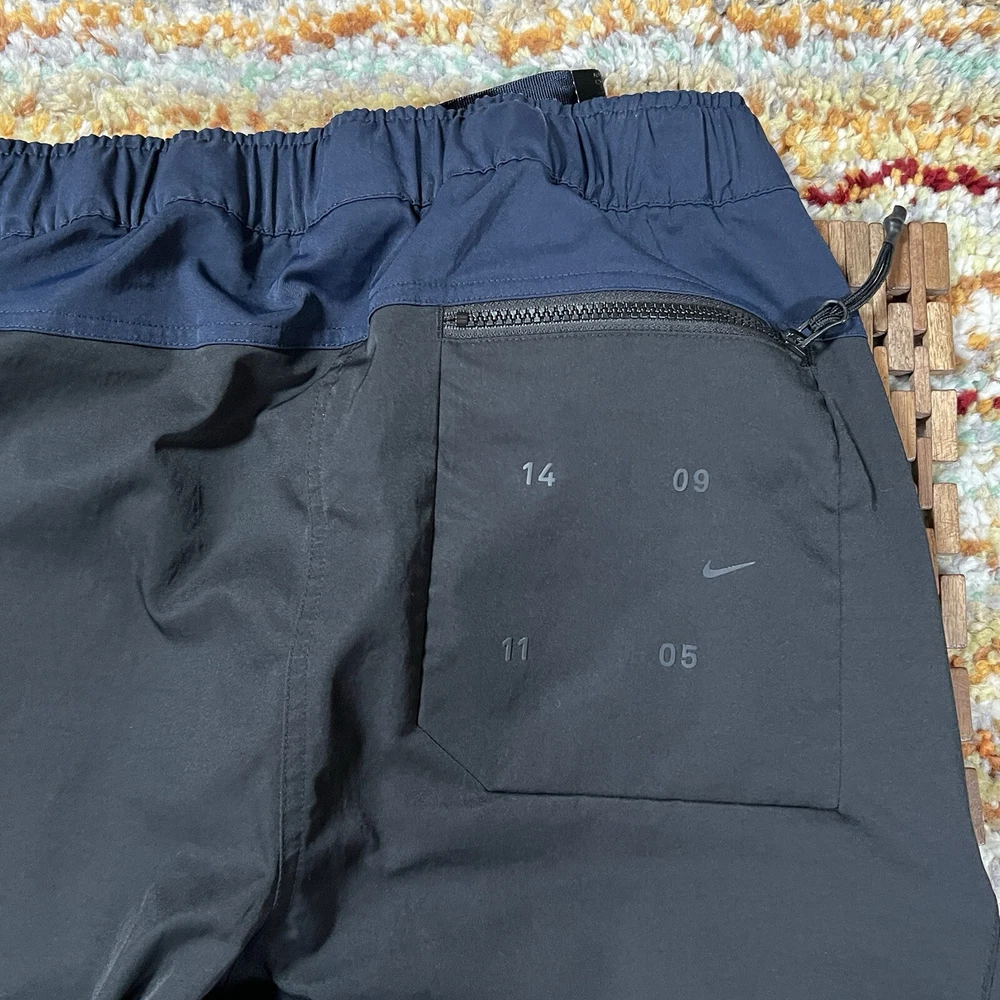 Nike Tech Pack Pants Joggers in black, size M, for men. These regular fit jogger pants feature a woven belted design with a tapered cargo style. The pants are part of the Nike Therma product line, combining functionality and style for a modern gorpcore look. Perfect for casual and active wear.