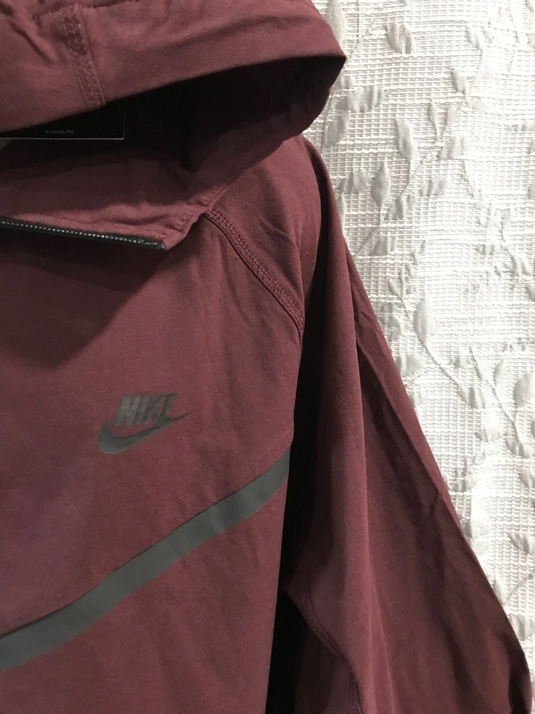 Description: Nike Tech Sportswear Men's (Size L) Burgundy Crush Long Sleeve Full-Zip Windrunner Woven Jacket. (See pictures) Brand: Nike Gender: Men's Size: L Color: Burgundy Crush Pattern: Solid Material: 92% polyester/8% spandex MSRP: $145 Buy It Now Price: $74.99 Shipping: Plus $8.50 for padded flat rate envelope shipping Note: Picture Accuracy is about 90%. Slight variance in color may result, due to lighting and camera default settings.