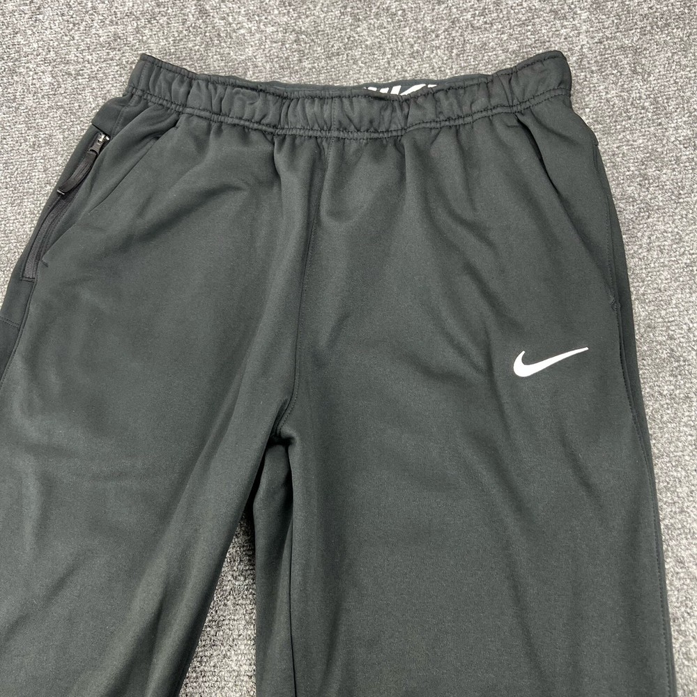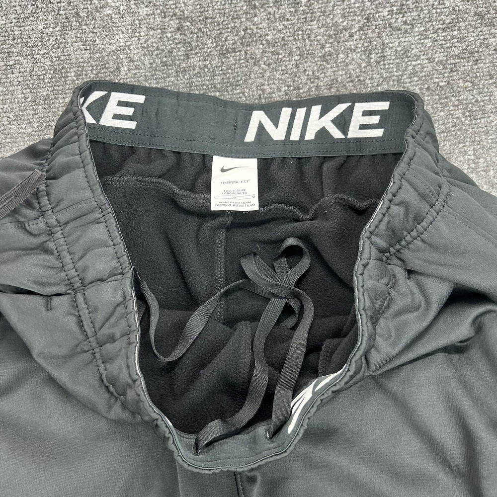 Performance/Activity: athleisure Fabric Type: dri fit Material: Polyester Season: Fall, Spring, Summer, Winter Color: Black Character: nike Handmade: No Inseam: 33 in Country/Region of Manufacture: Indonesia Size Type: Regular Model: Nike Fit: Regular Brand: Nike Theme: none Style: Track Pants Leg Style: Tapered Personalize: No Waist Size: Large Personalized: No Garment Care: Machine Washable Features: Breathable, Comfort, Easy Care, Lightweight, Moisture Wicking, Pockets, Quick Dry Department: Men Pattern: Solid Product Line: Nike Therma Closure: Pull On Compression Area: Waist Compression Level: Moderate Vintage: No Occasion: Activewear, Casual Type: Pants Size: L