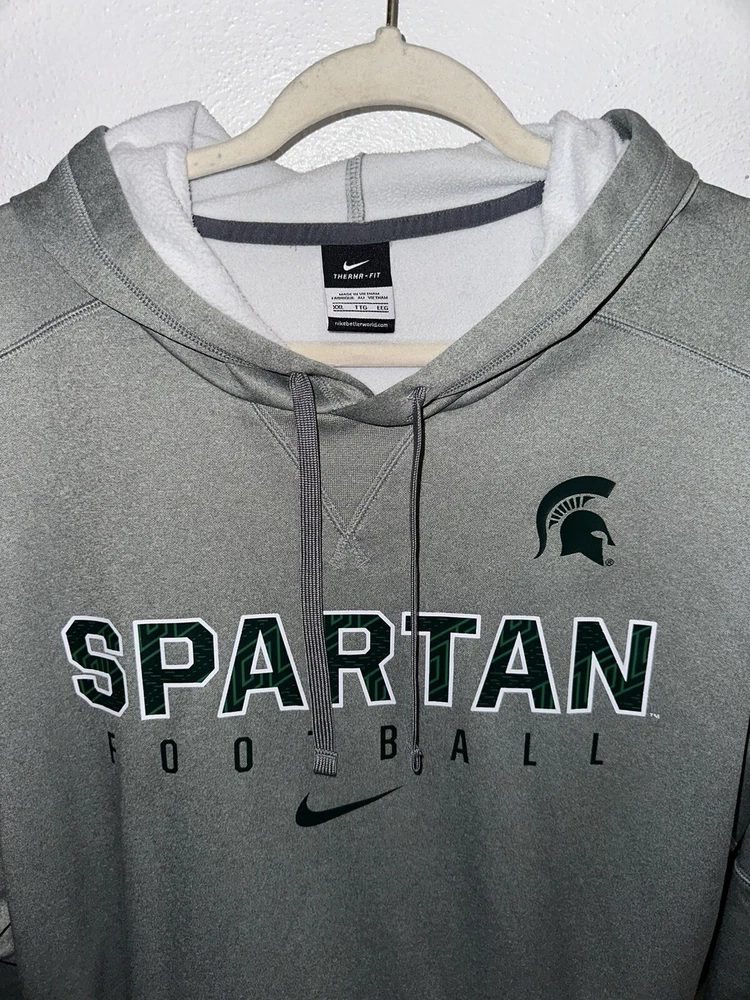 Nike Therma Fit Michigan State Spartans Pullover Hoodie Mens XXL Gray Football. Condition is Used. Shipped with USPS Ground Advantage.